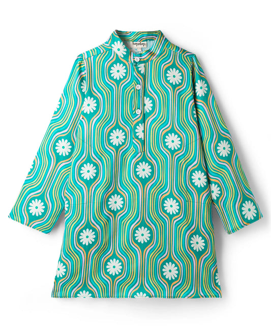 GREEN FLORAL GEOMETRIC PRINT KURTA SET