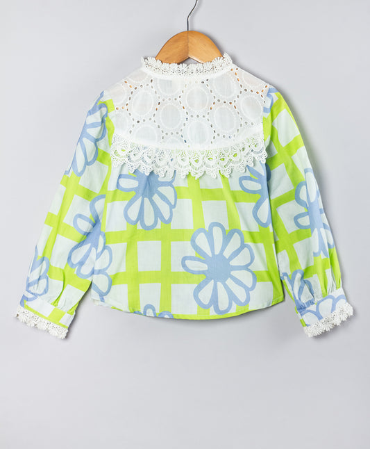 LIME GREEN TOP WITH BLUE CHECK PRINT COLLAR
