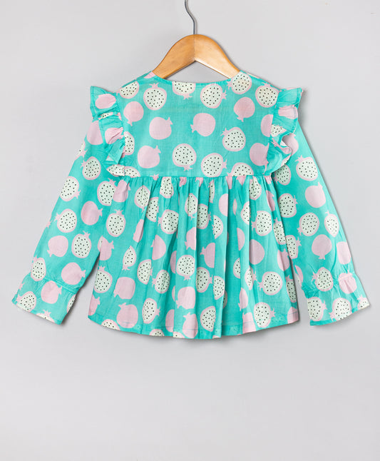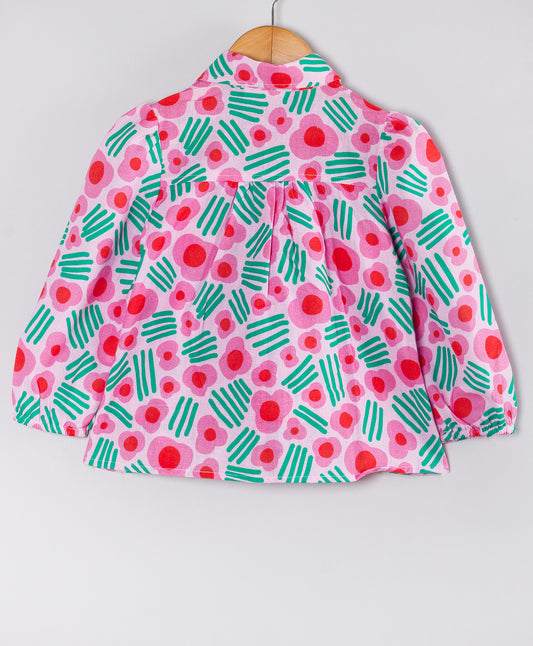 PINK FLORAL PRINT TOP WITH FRILLS AT FRONT