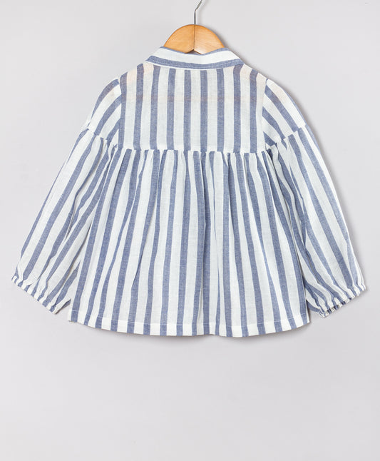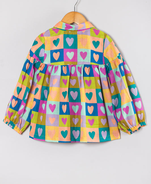 STRIPE PRINT TOP WITH HEART PATCH POCKETS