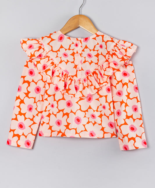 BLOOMING FLORAL PRINT TOP WITH MULTI FRILLS