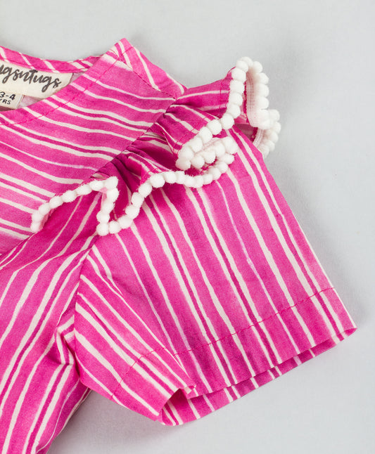 HOT PINK STRIPE PRINT TOP WITH CONTRAST LACE TRIMS