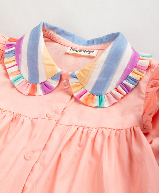 PEACH SOLID TOP WITH MULTI-STRIPE COLLAR