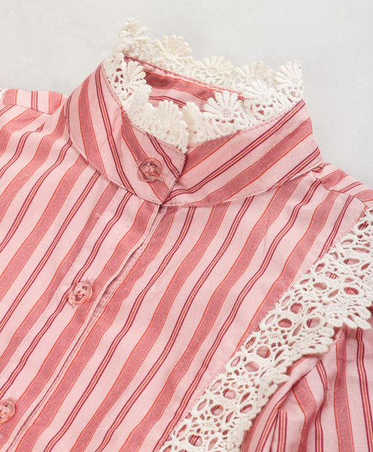 STRIPE PRINT SHIRT WITH CONTRAST LACE TRIM DETAILS