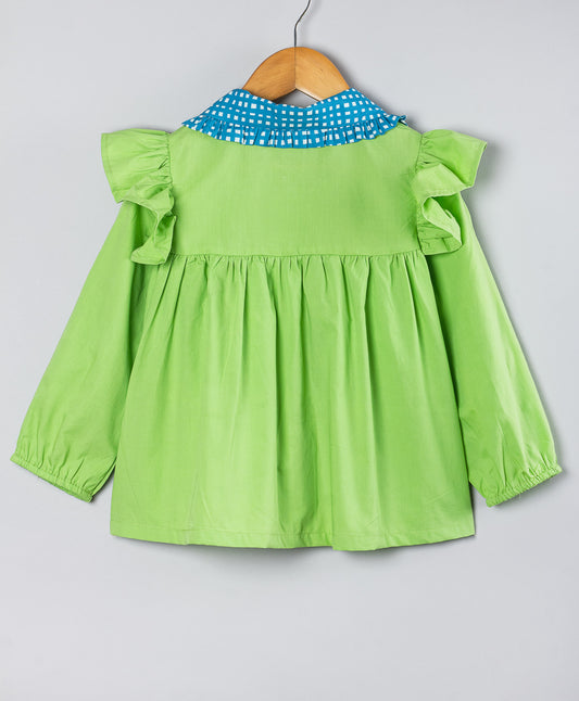 LIME GREEN TOP WITH BLUE CHECK PRINT COLLAR