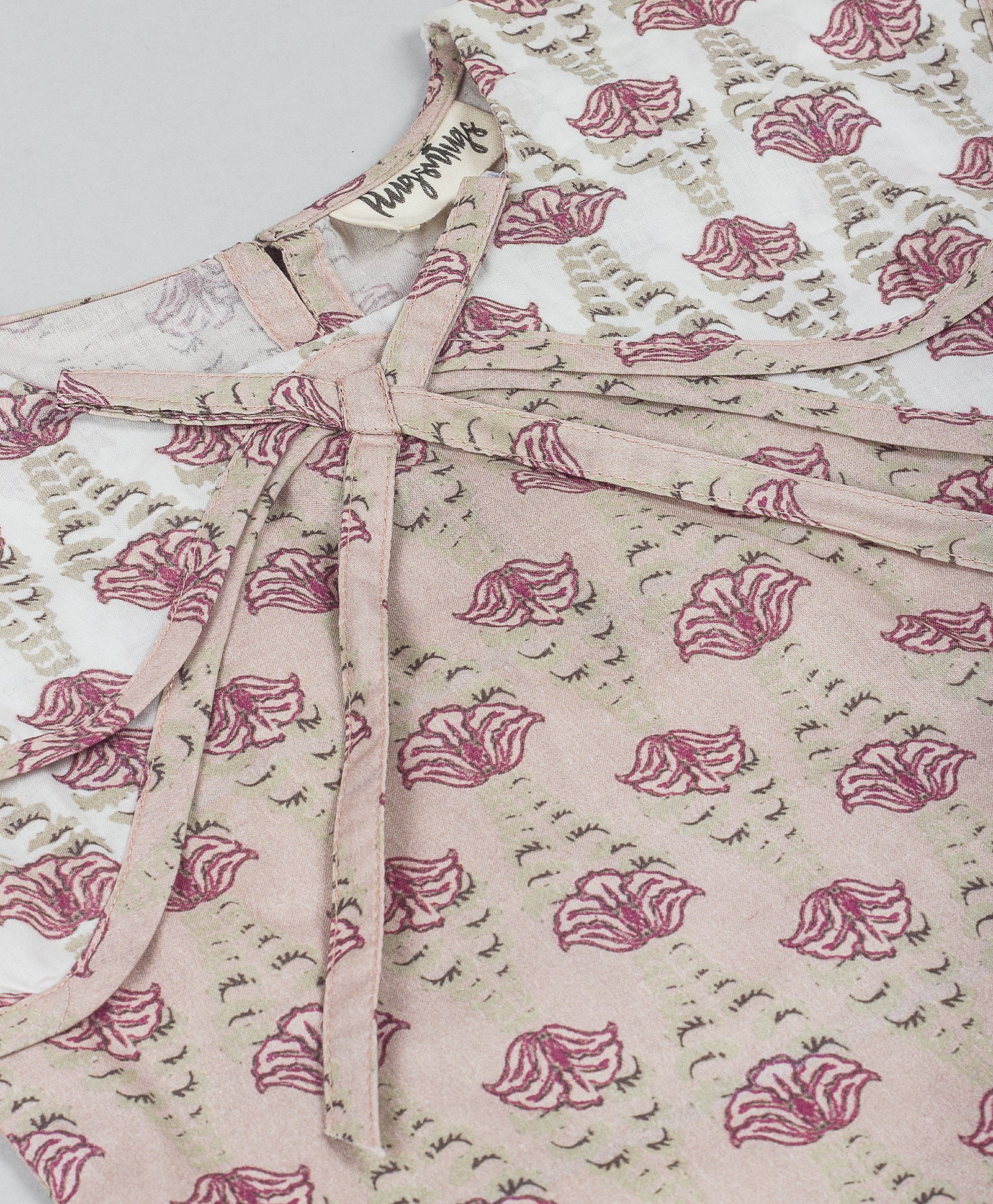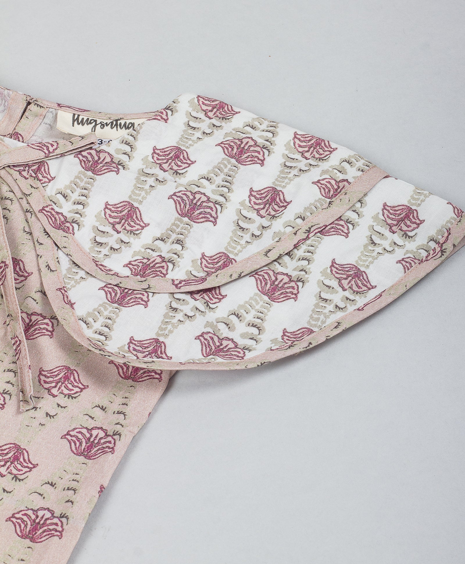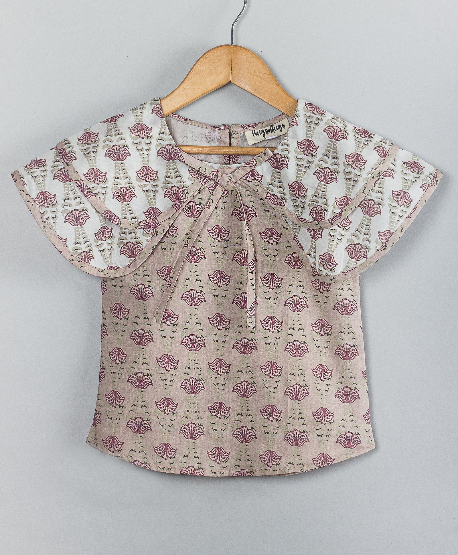 BEIGE MOTIF PRINT TOP WITH MATCHING PRINT SHOULDER FLAPS