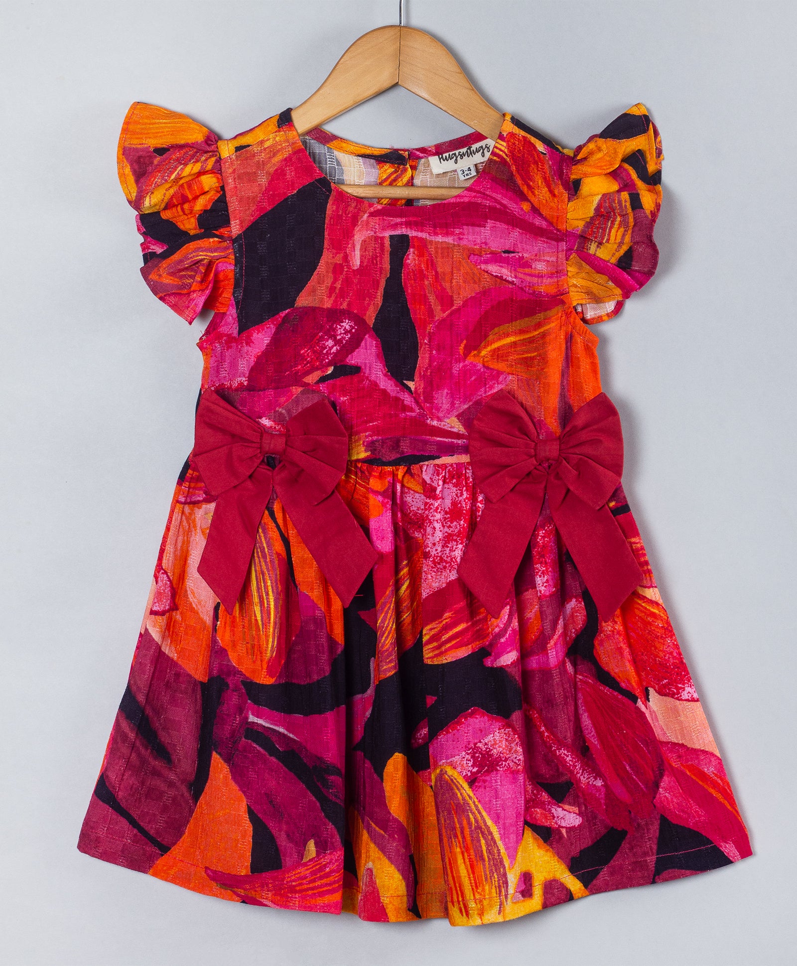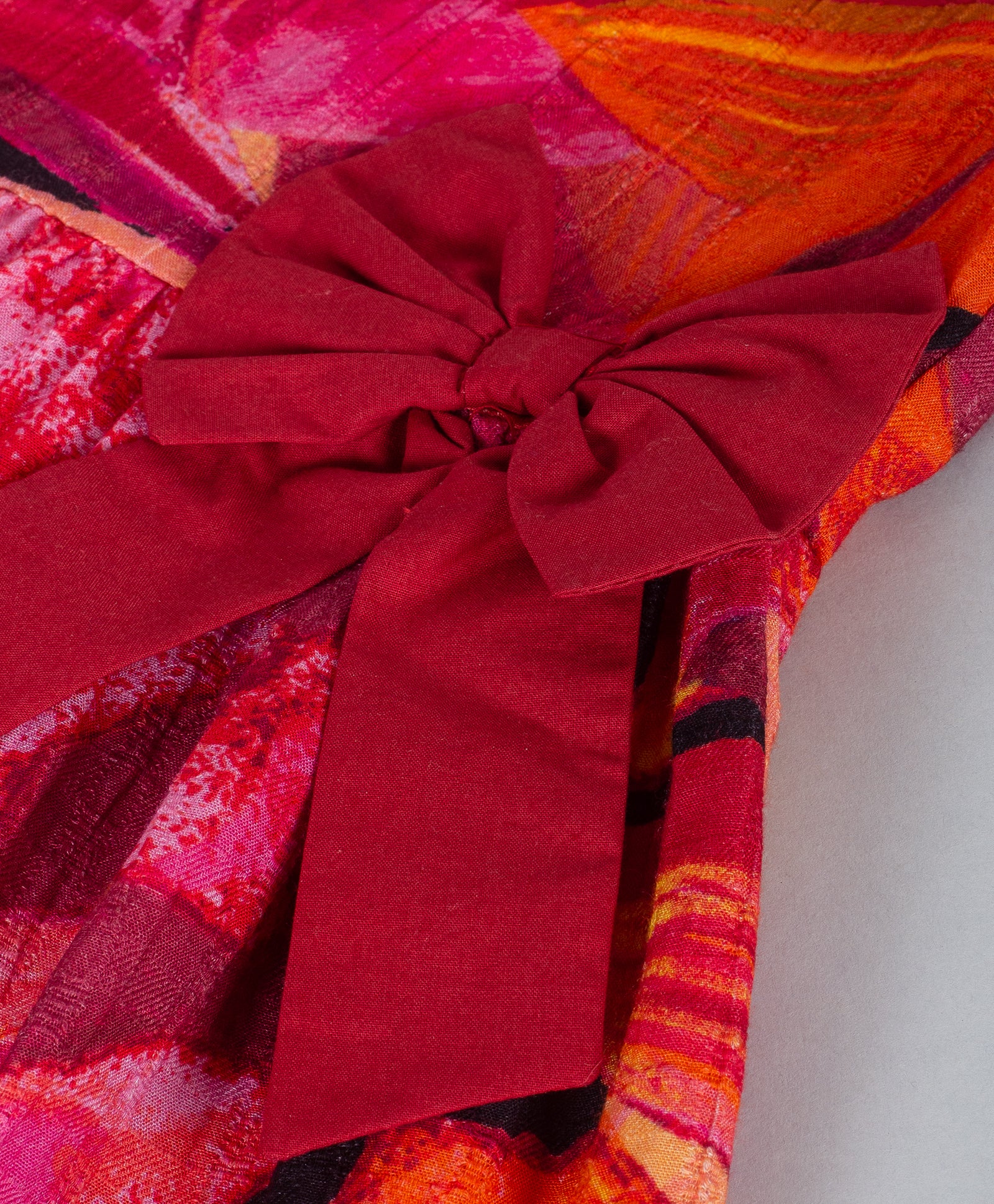 BIG FLORAL PRINT DRESS WITH BOWS AT SIDE WAIST