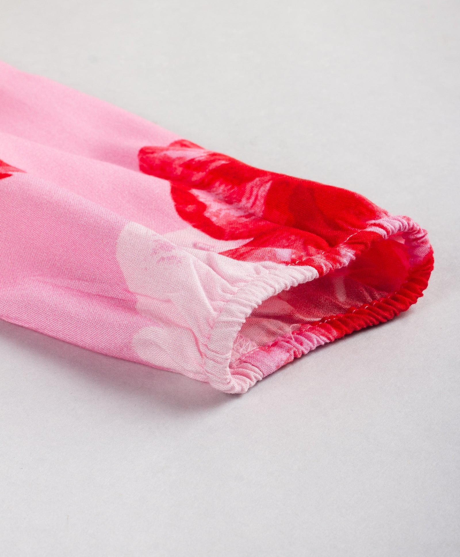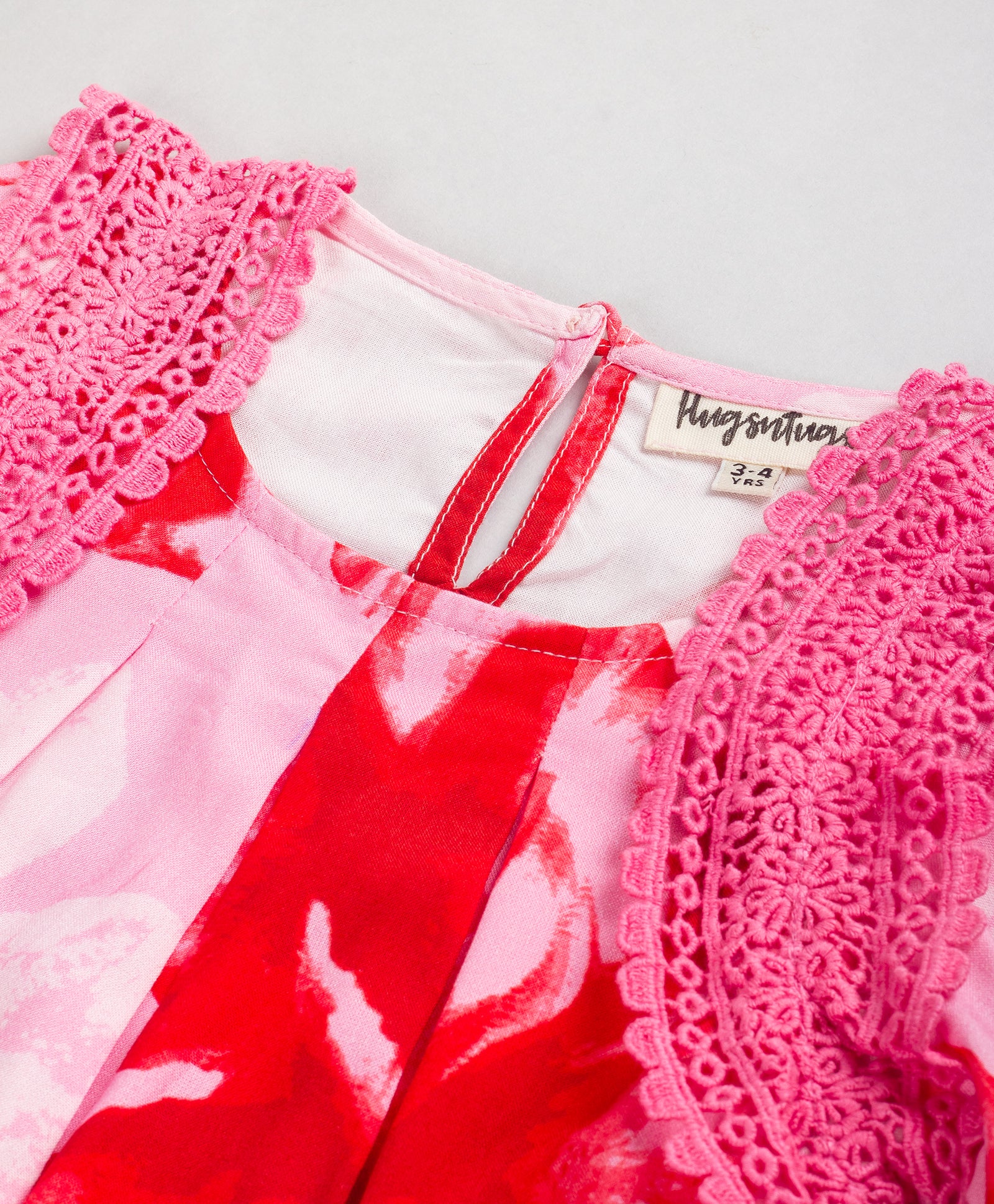 BIG FLOWER PRINT TOP WITH BRIAD LACE ALONG ARMHOLE