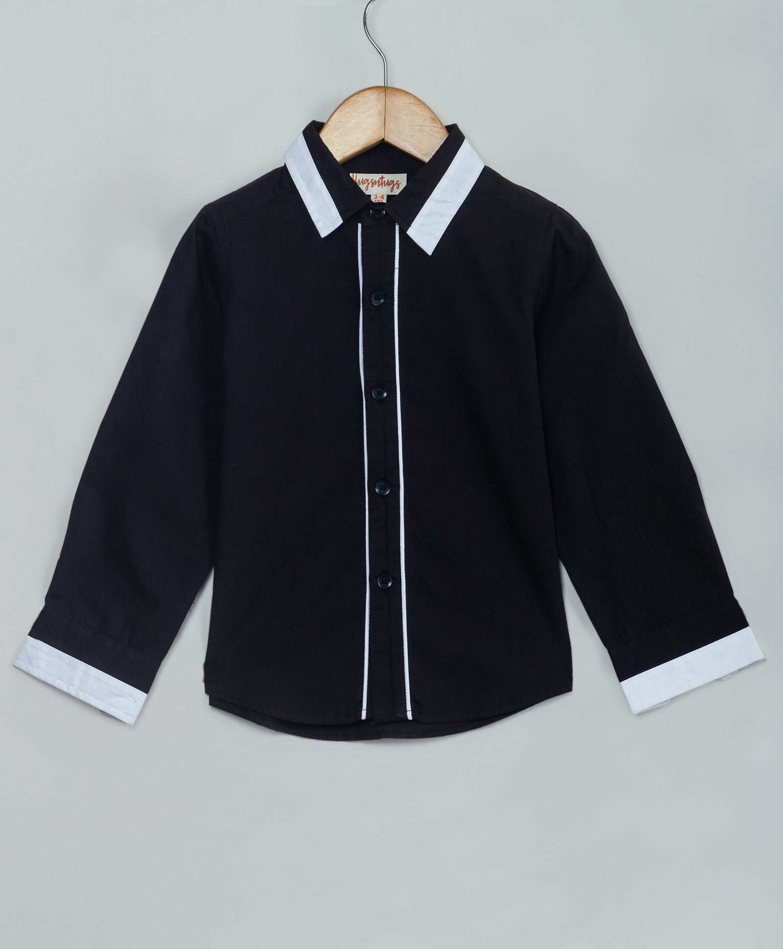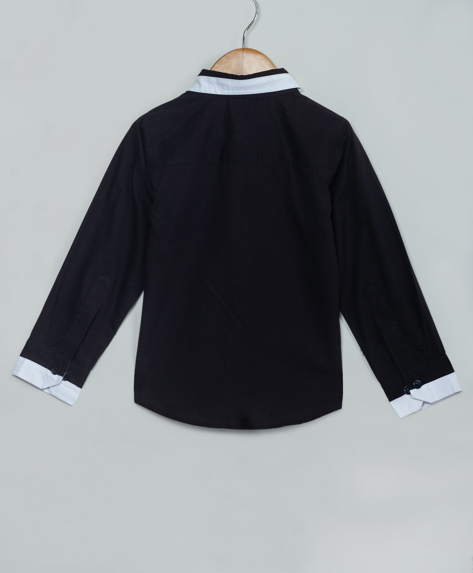 FULL SLEEVES BOYS SHIRT WITH CONTRAST BLACK COLLARS AND PIPING ALONG THE PLACKET AND CUFF