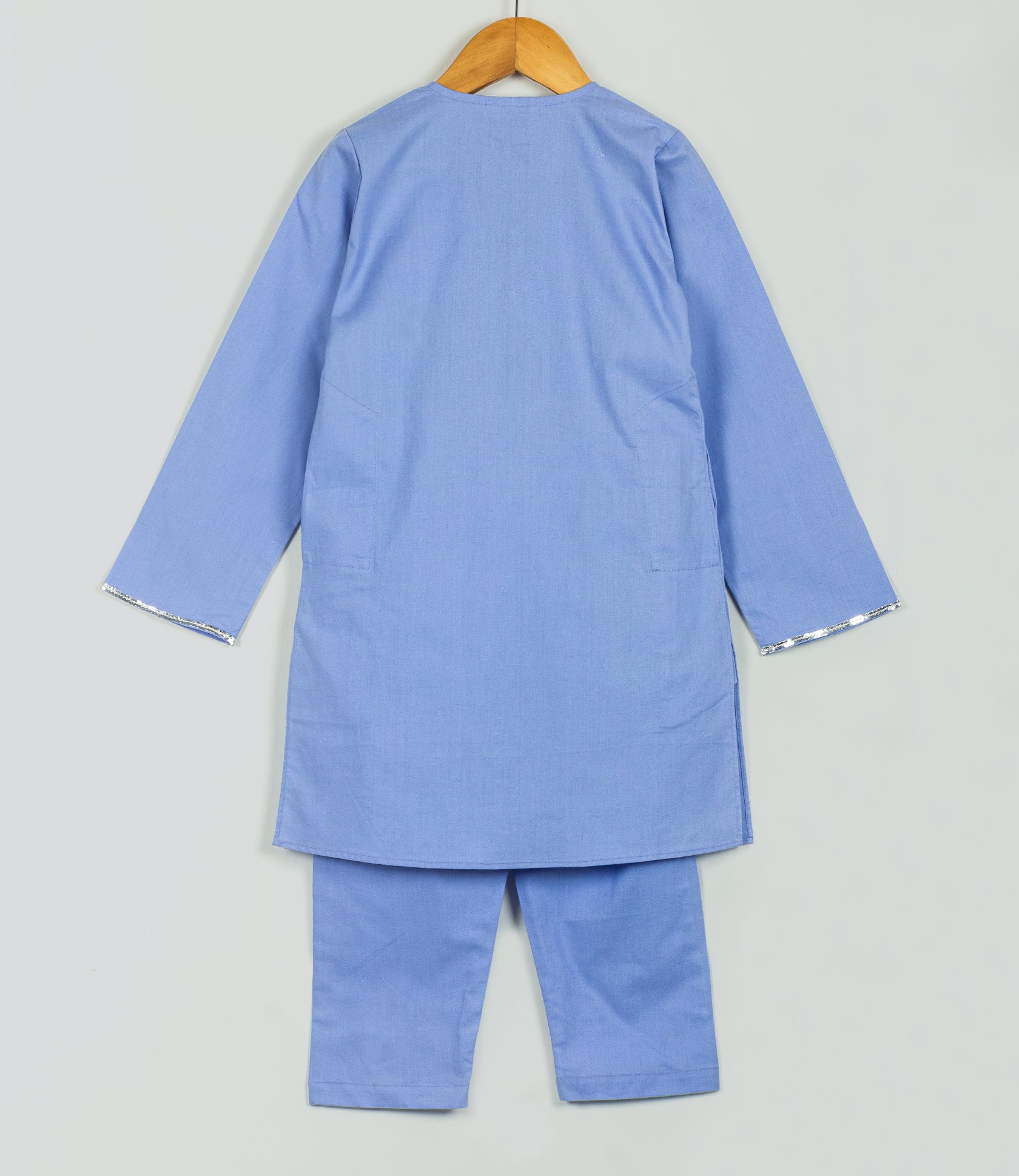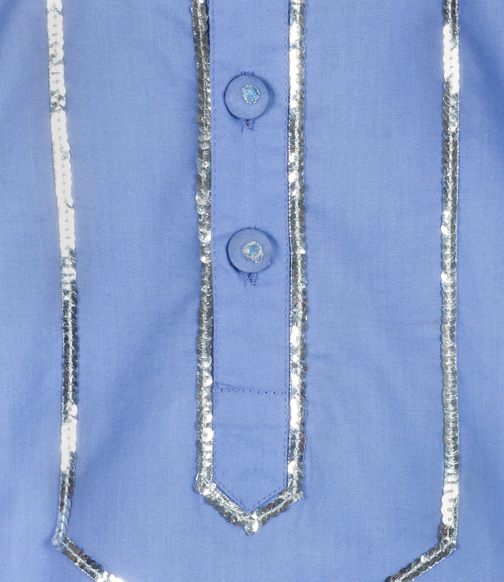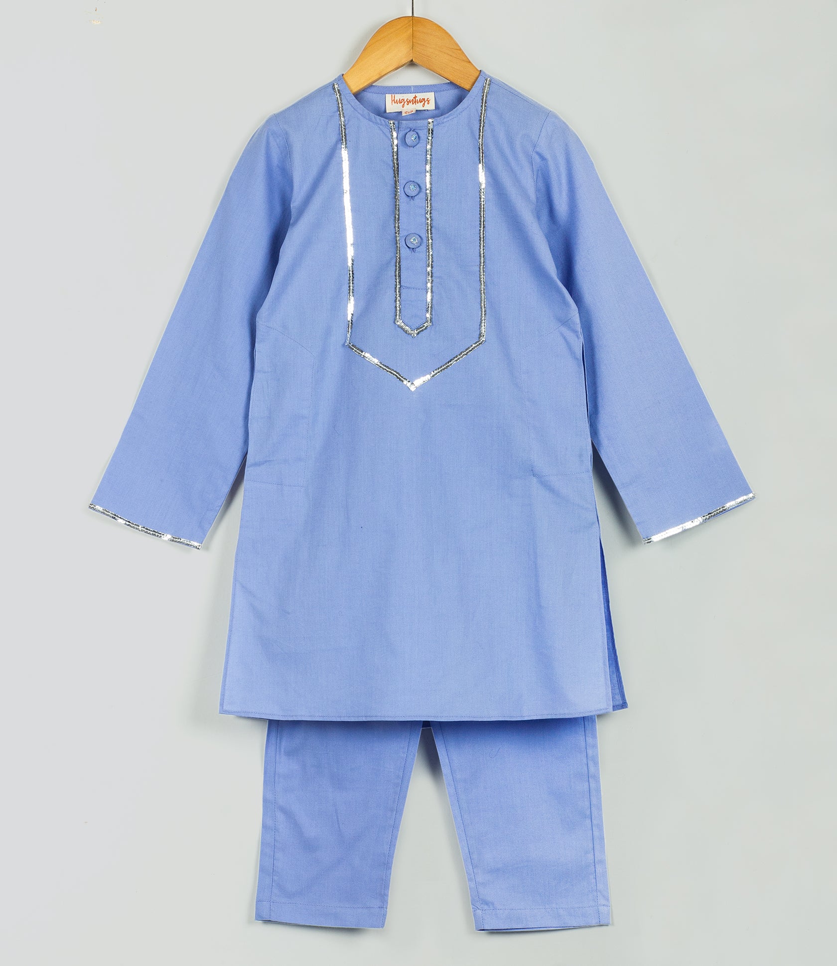 BLUE KURTA SET WITH SEQUIN LACE ALONG THE PLACKET