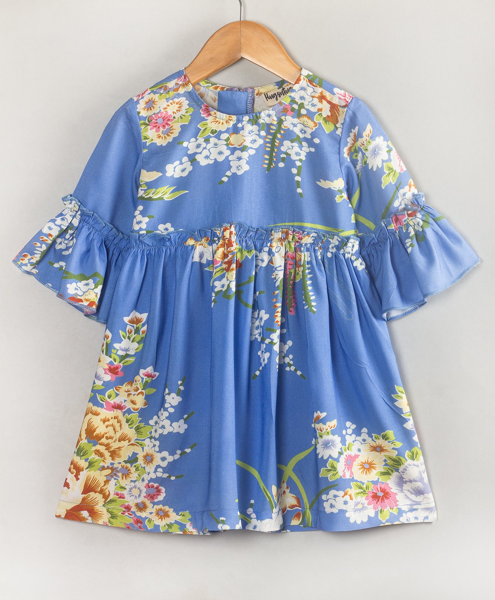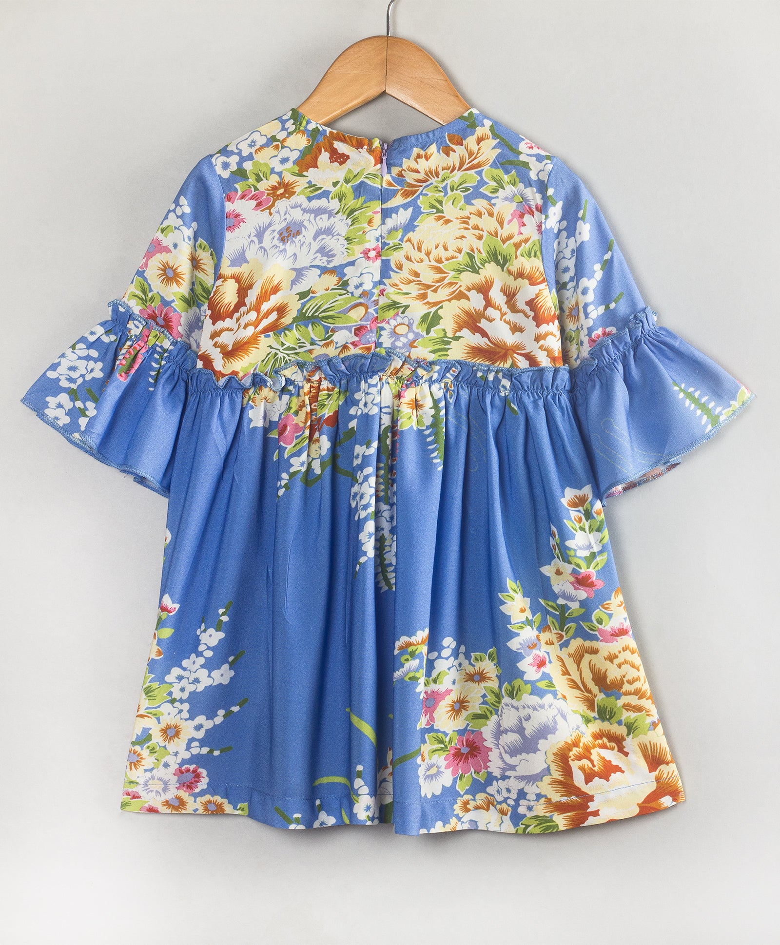 BLUE ORIENTAL FLORAL PRINT DRESS