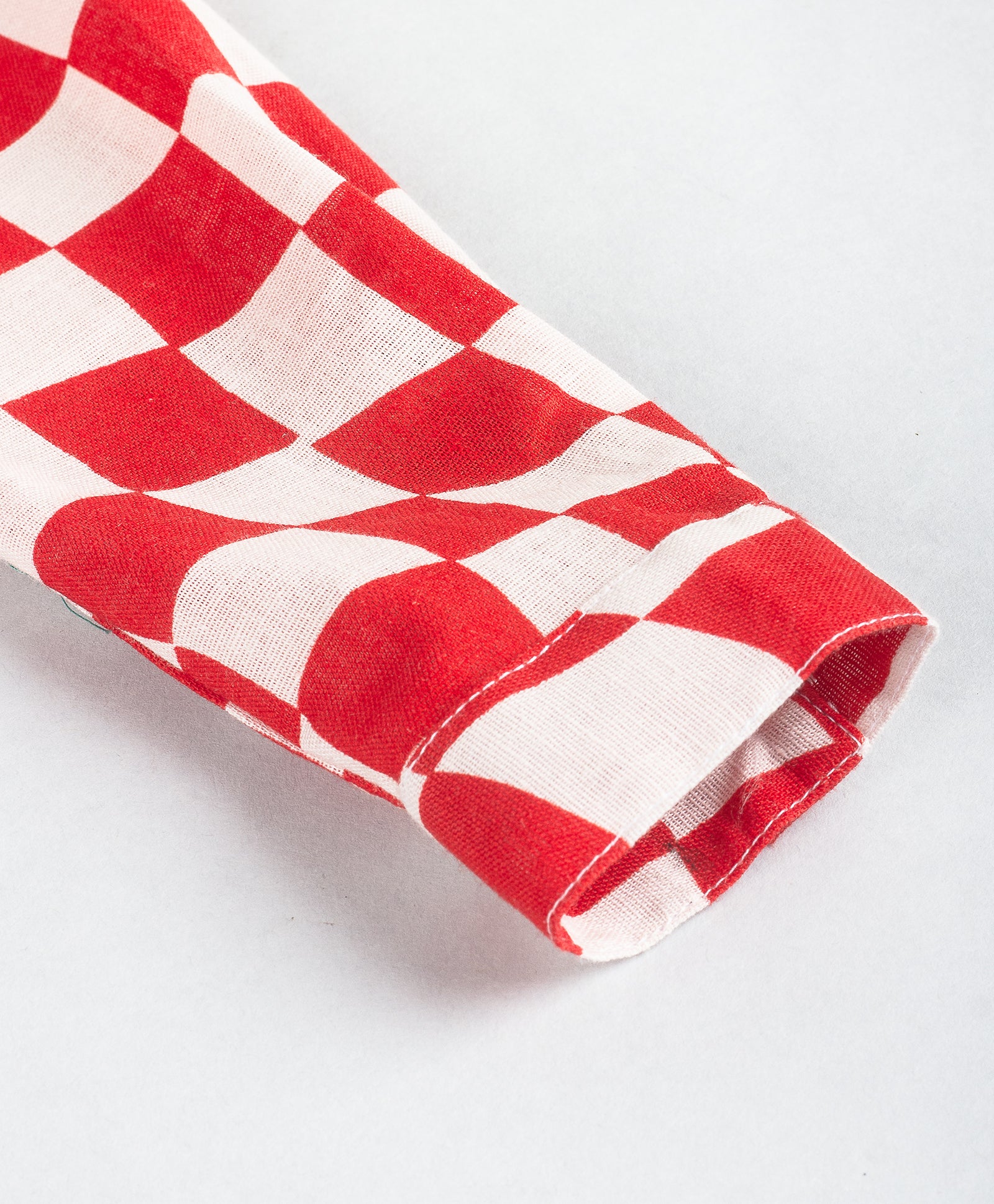 CHECK PRINT CHRISTMAS DRESS WITH EMBROIDERED COLLARS