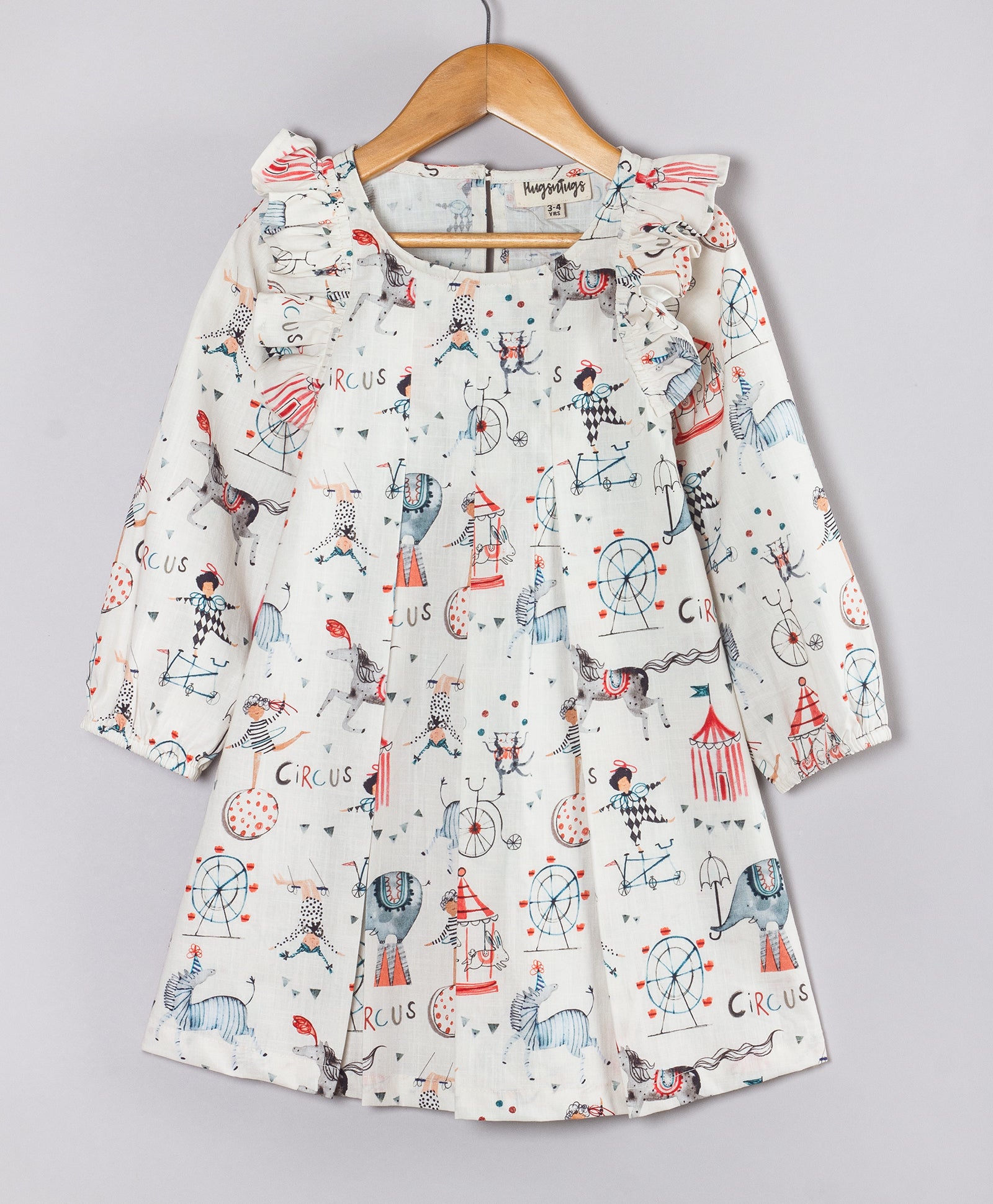 CIRCUS PRINT DRESS WITH PLEATS