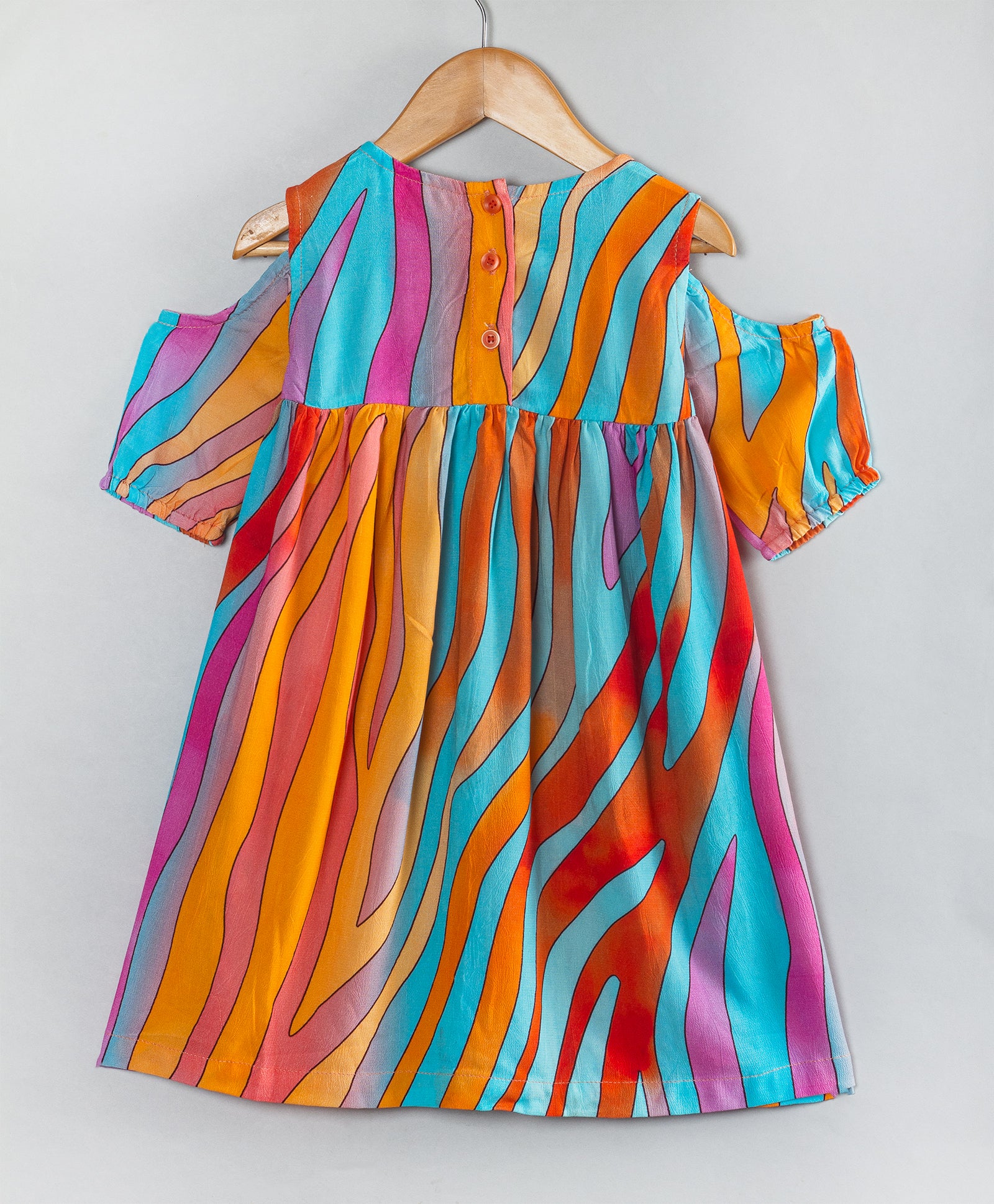 COLORFUL WAVES PRINT COLD SHOULDER DRESS