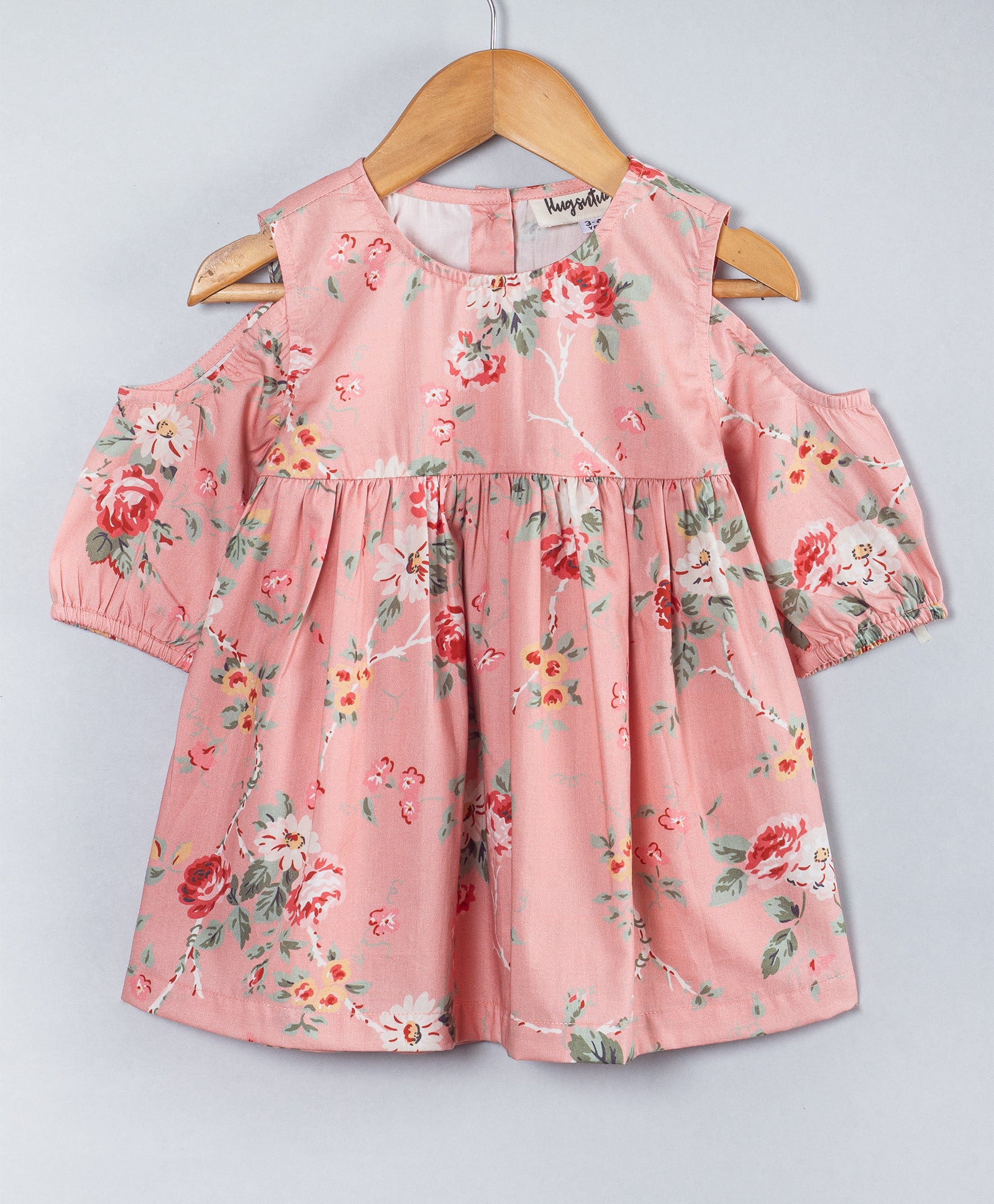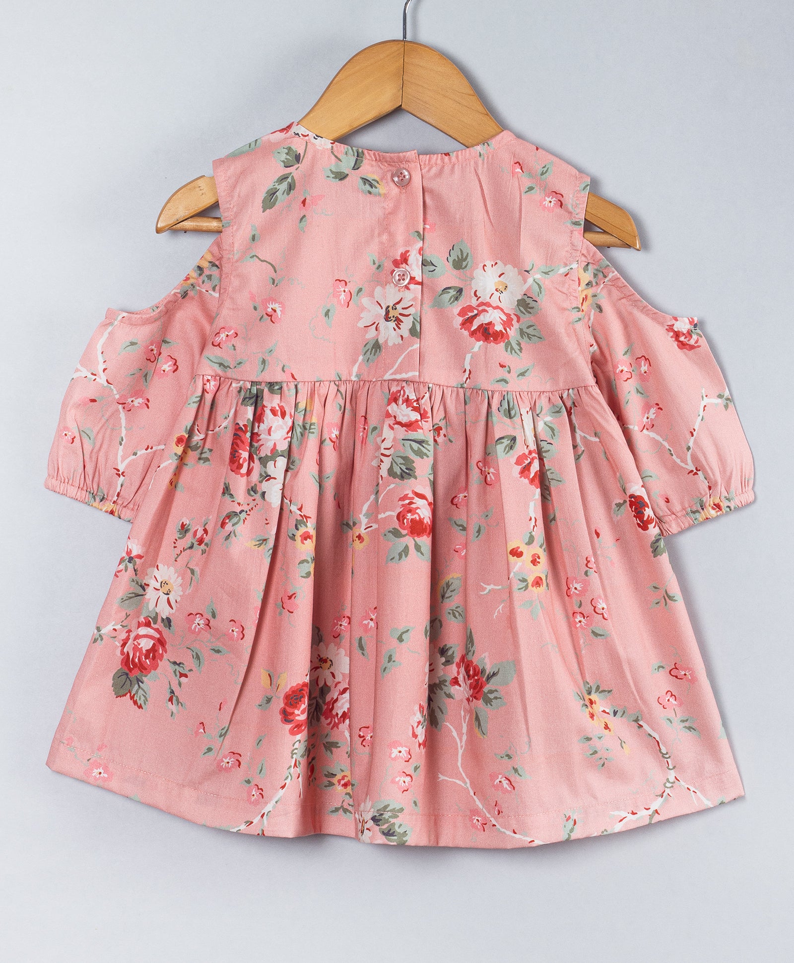 CORAL COLD SHOULDER TOP WITH FLORAL PRINT