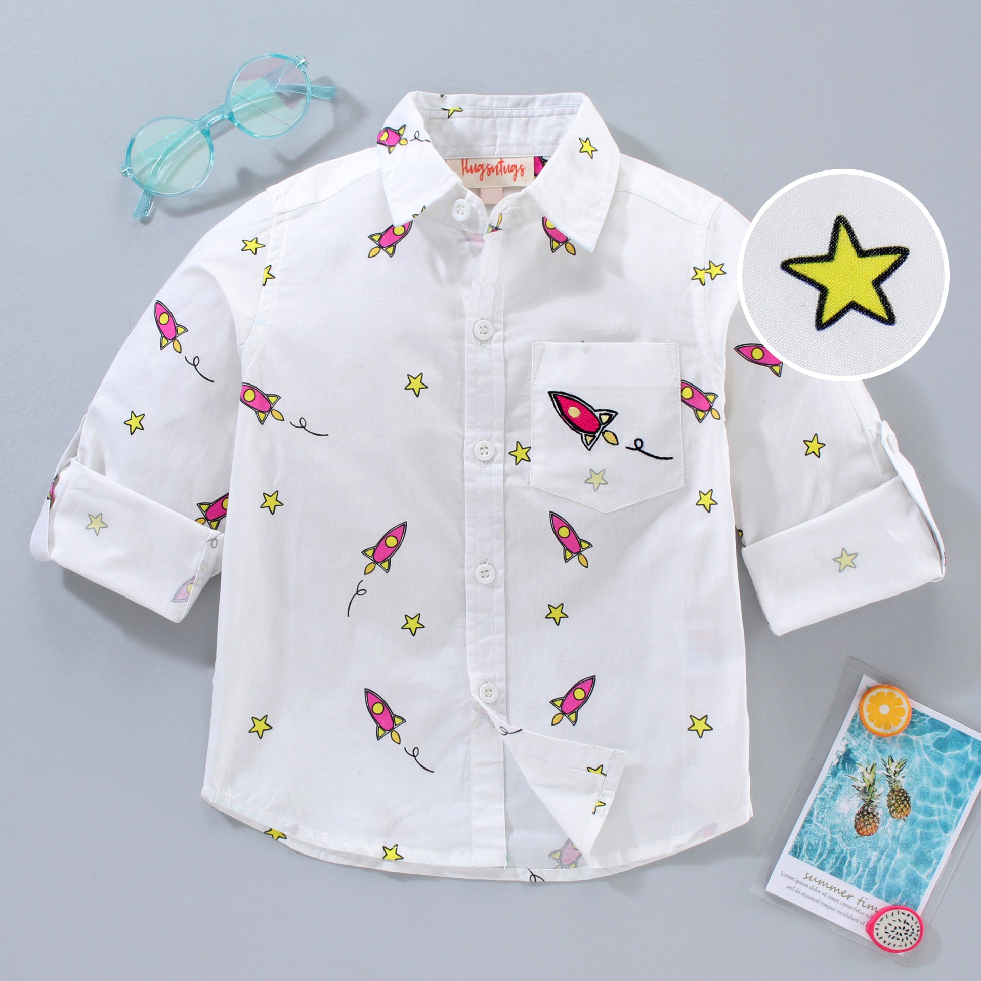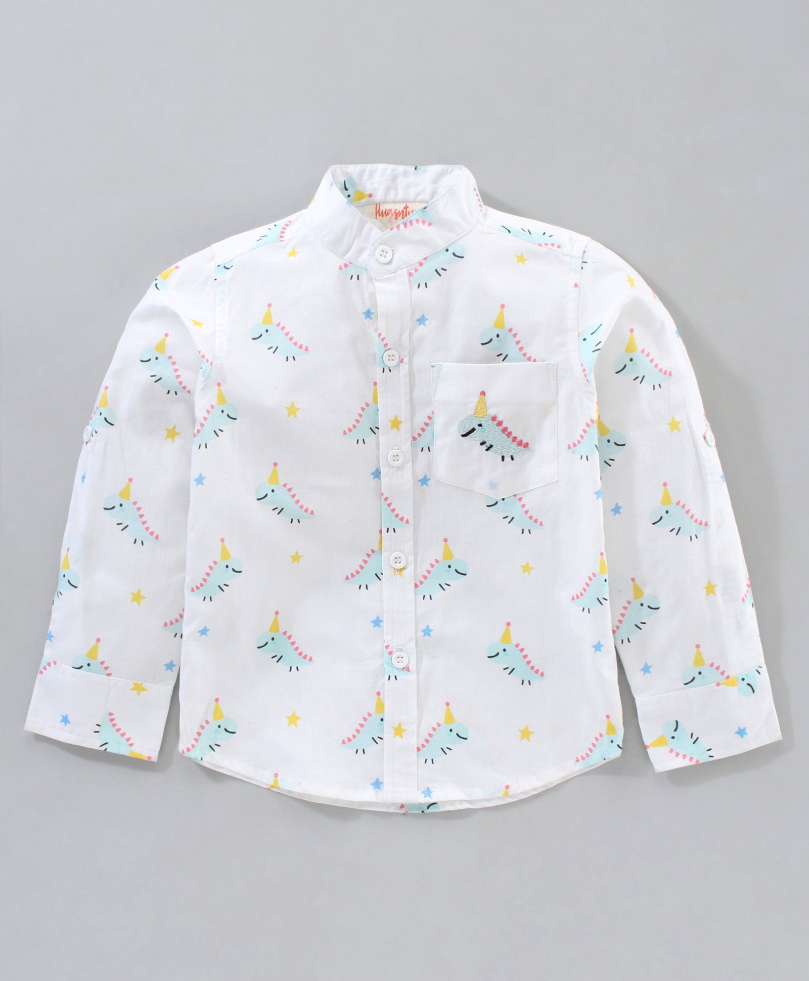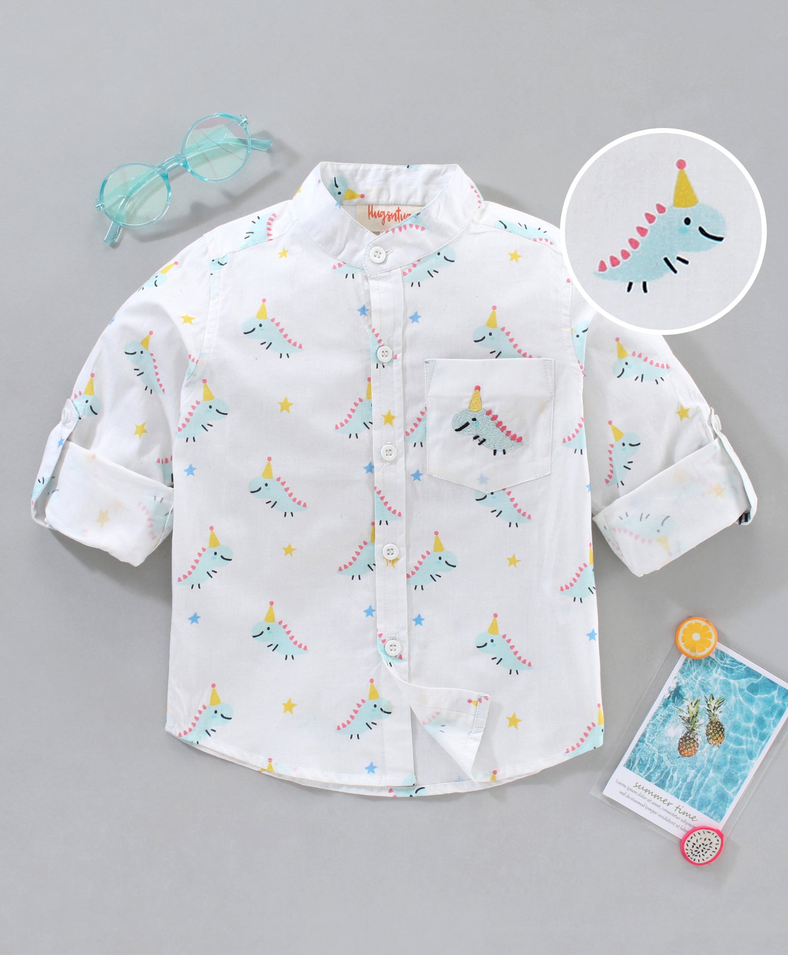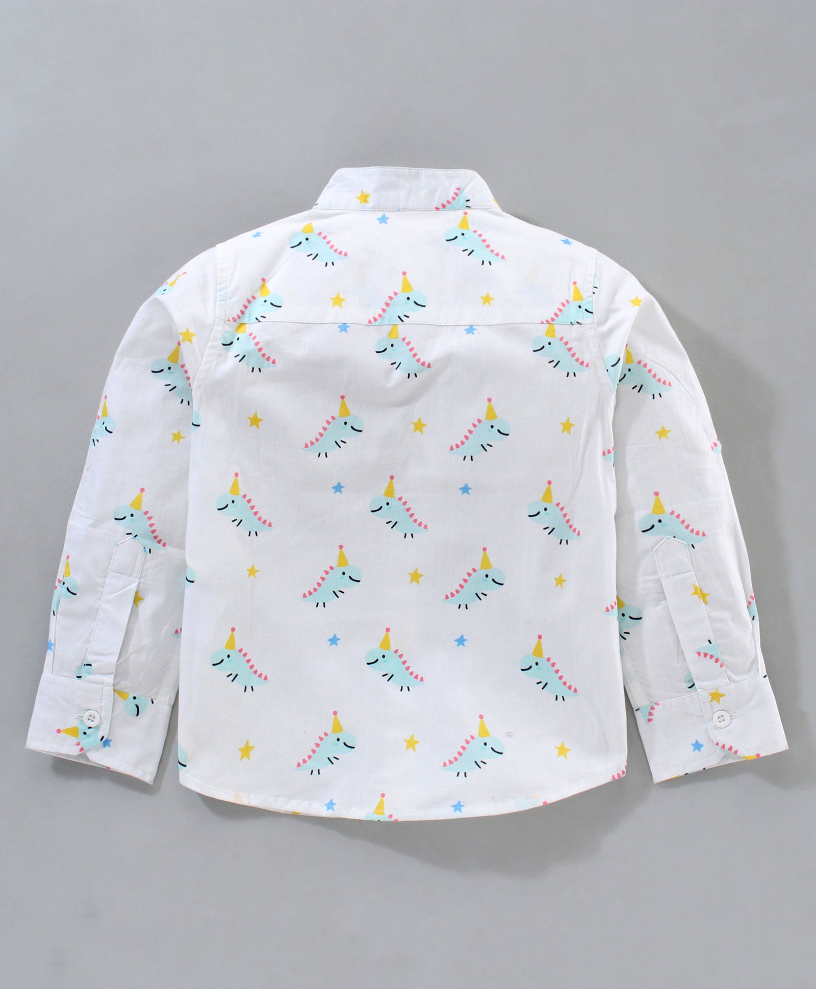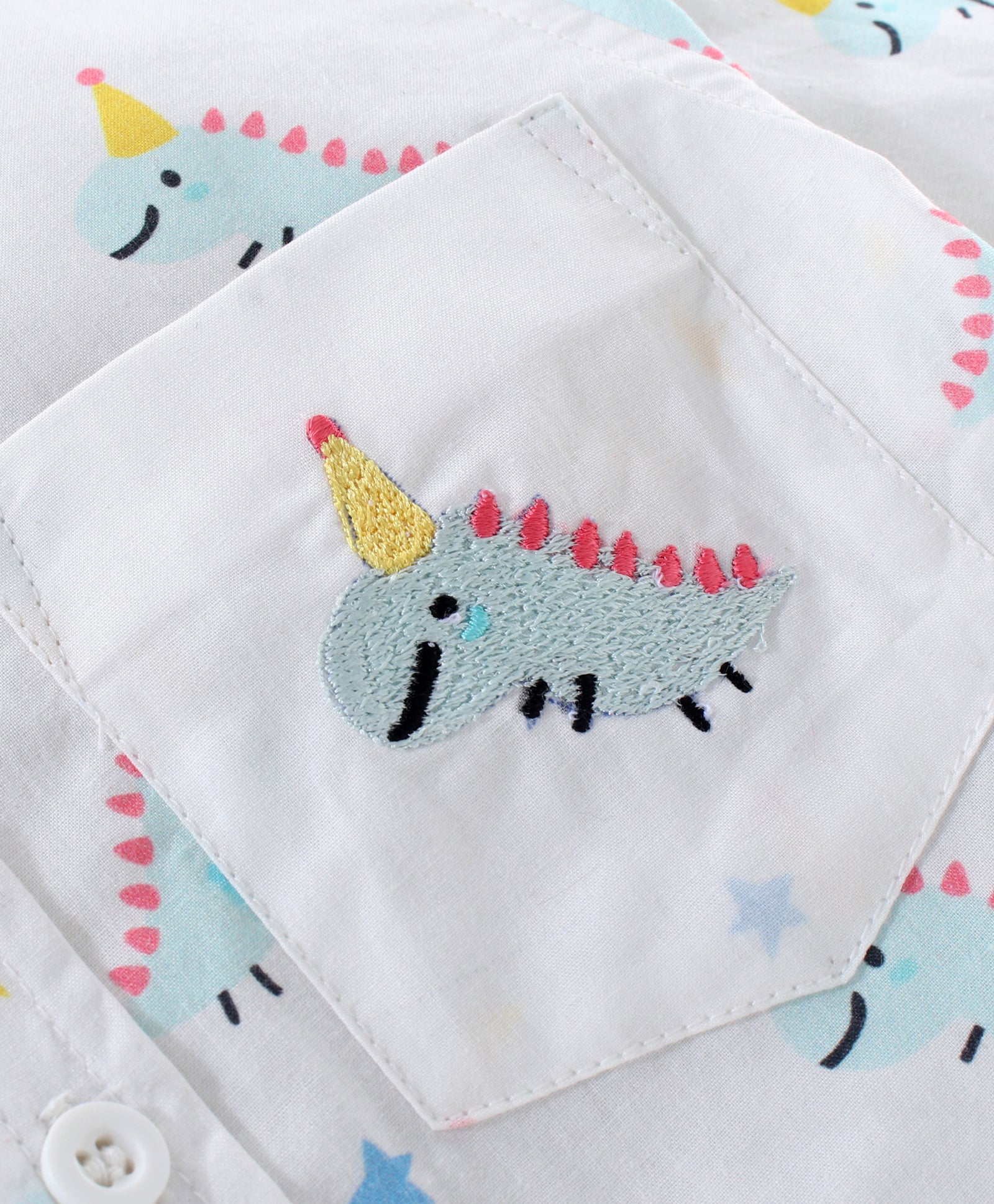 DINO PRINT SHIRT WITH EMBROIDERY AT THE POCKET AND LONG SLEEVES