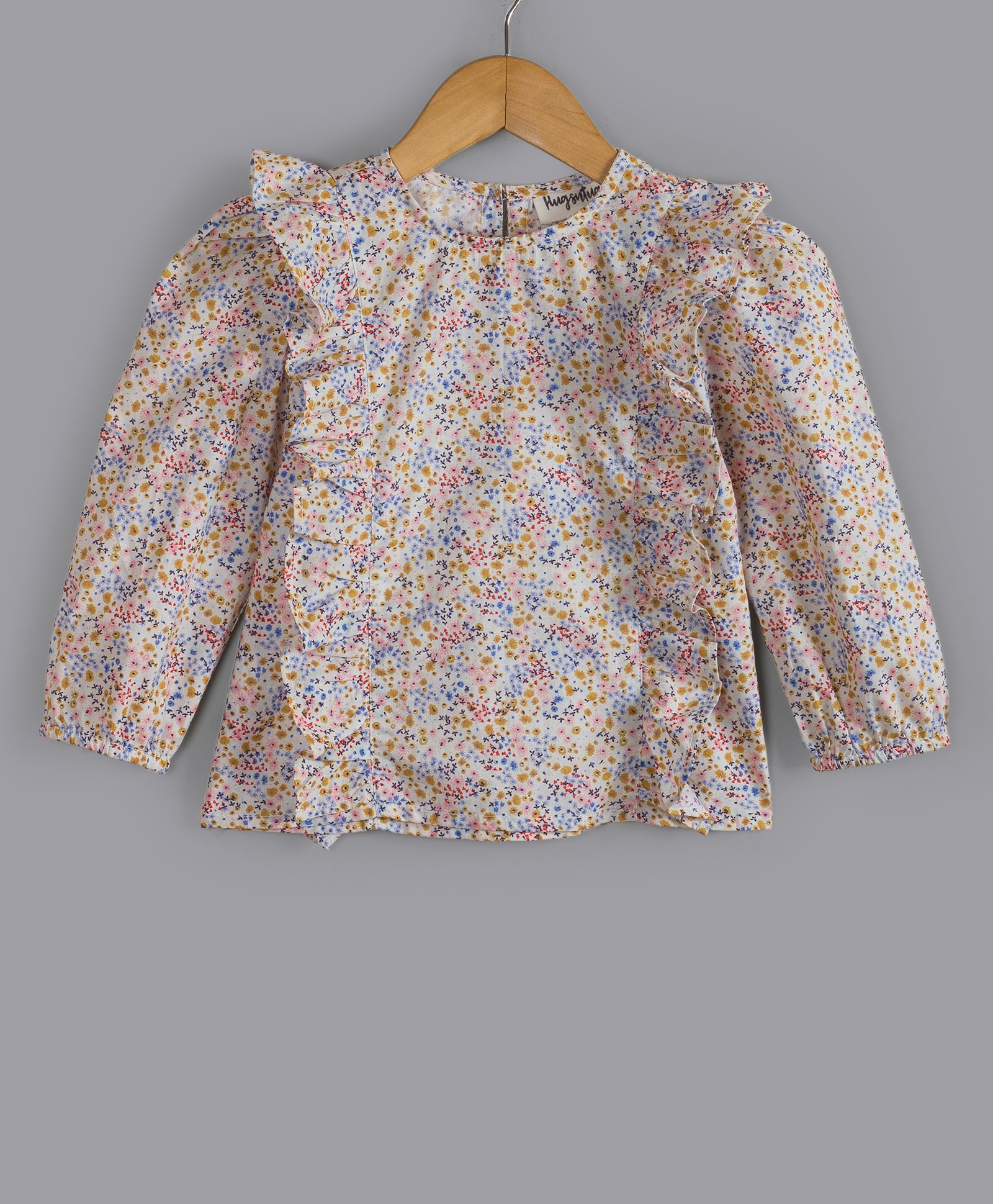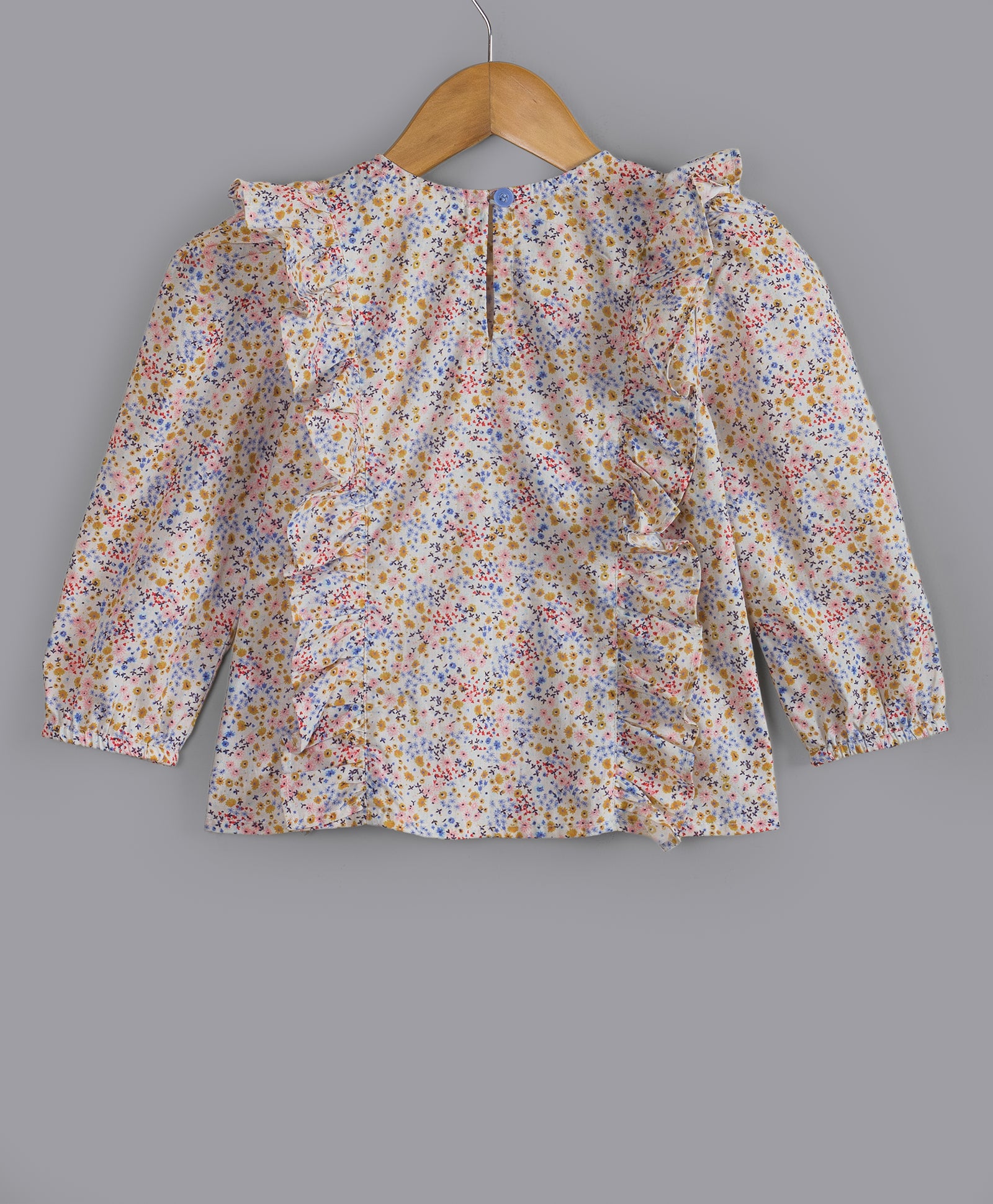 DITSY FLORAL MULTI COLOR TOP WITH FRILLS ON THE FRONT SIDES