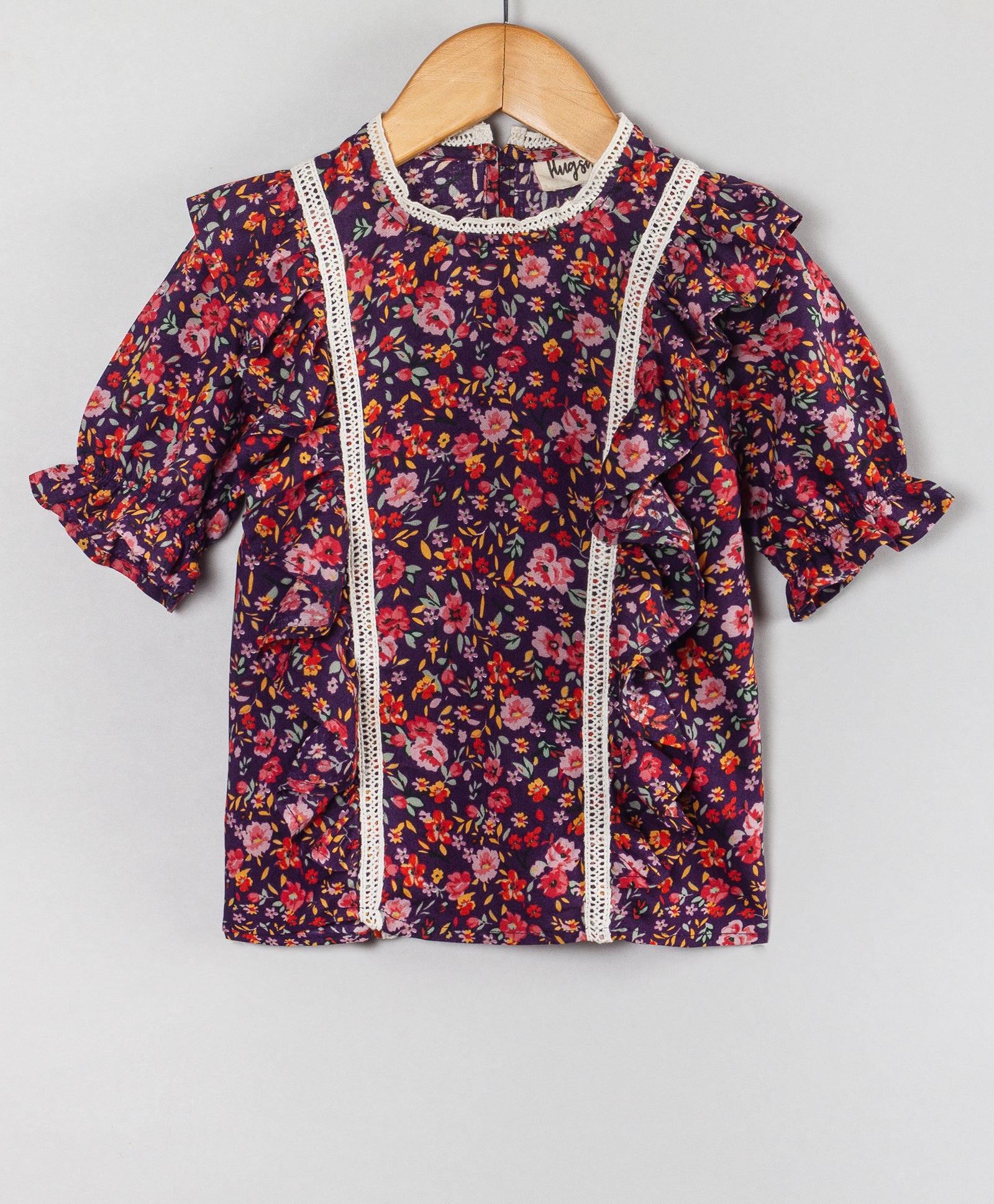 DITSY FLORAL PRINT TOP WITH CONTRAST LADDER LACE
