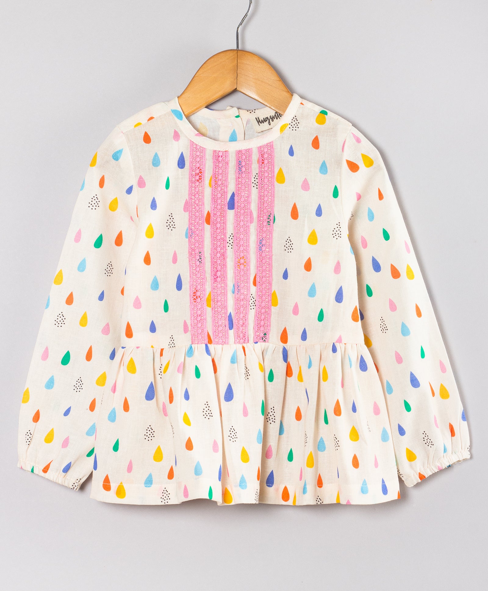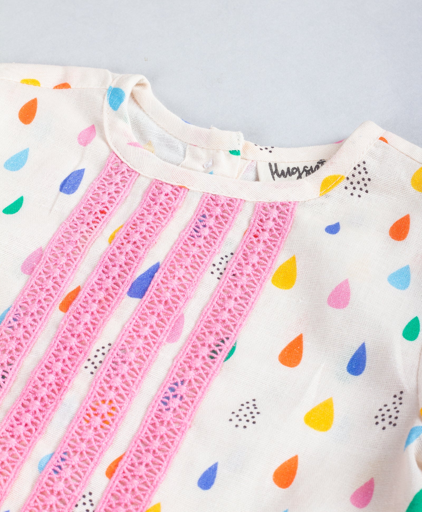 DROP PRINT TOP WITH CONTRAST LACE DETAILING