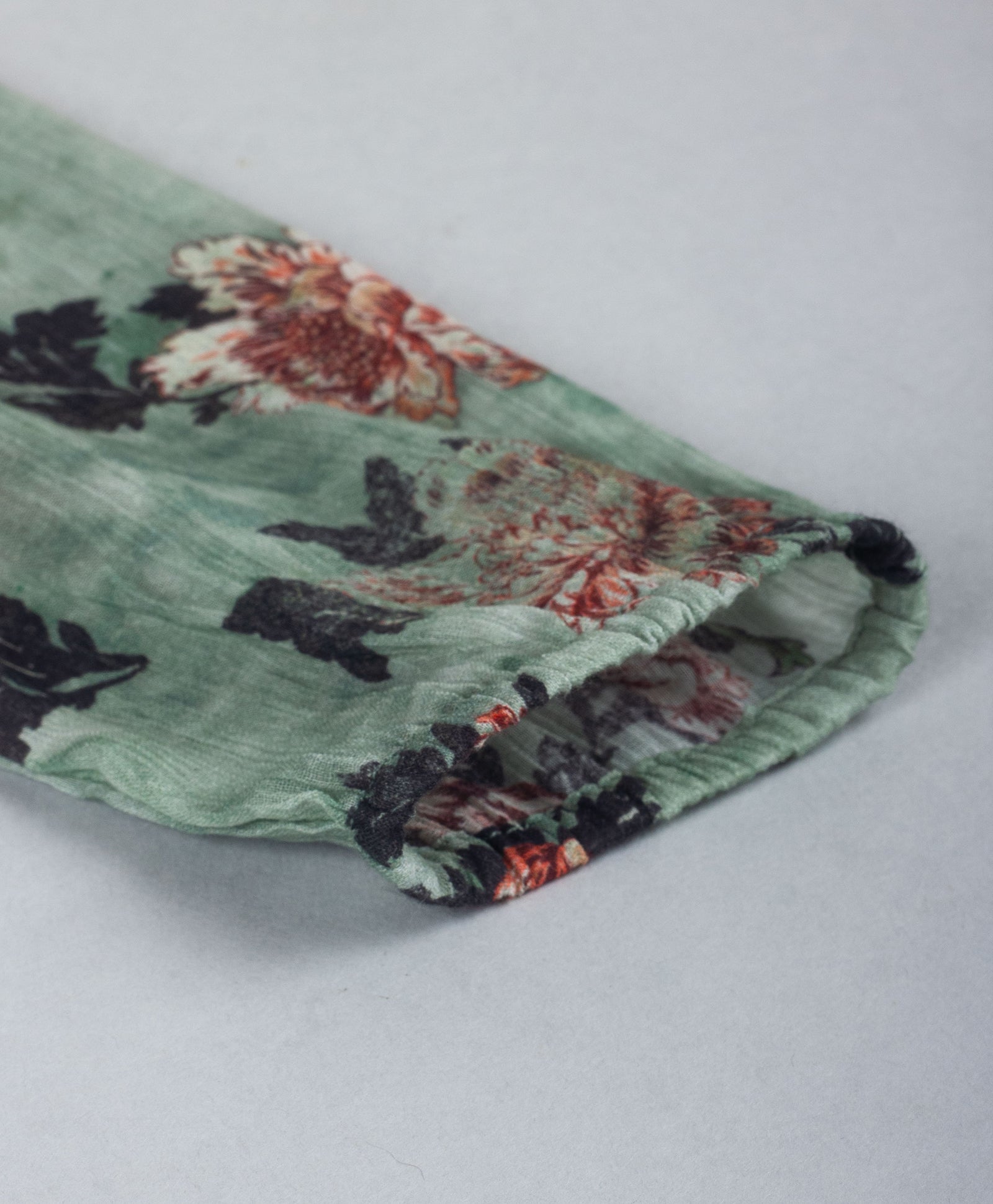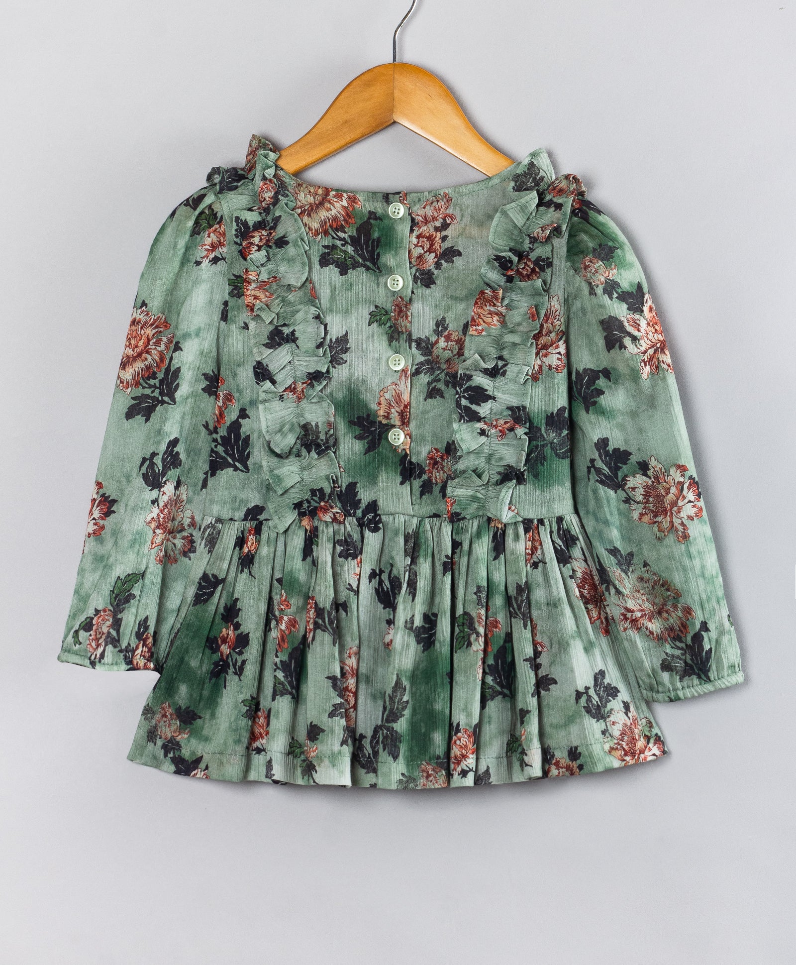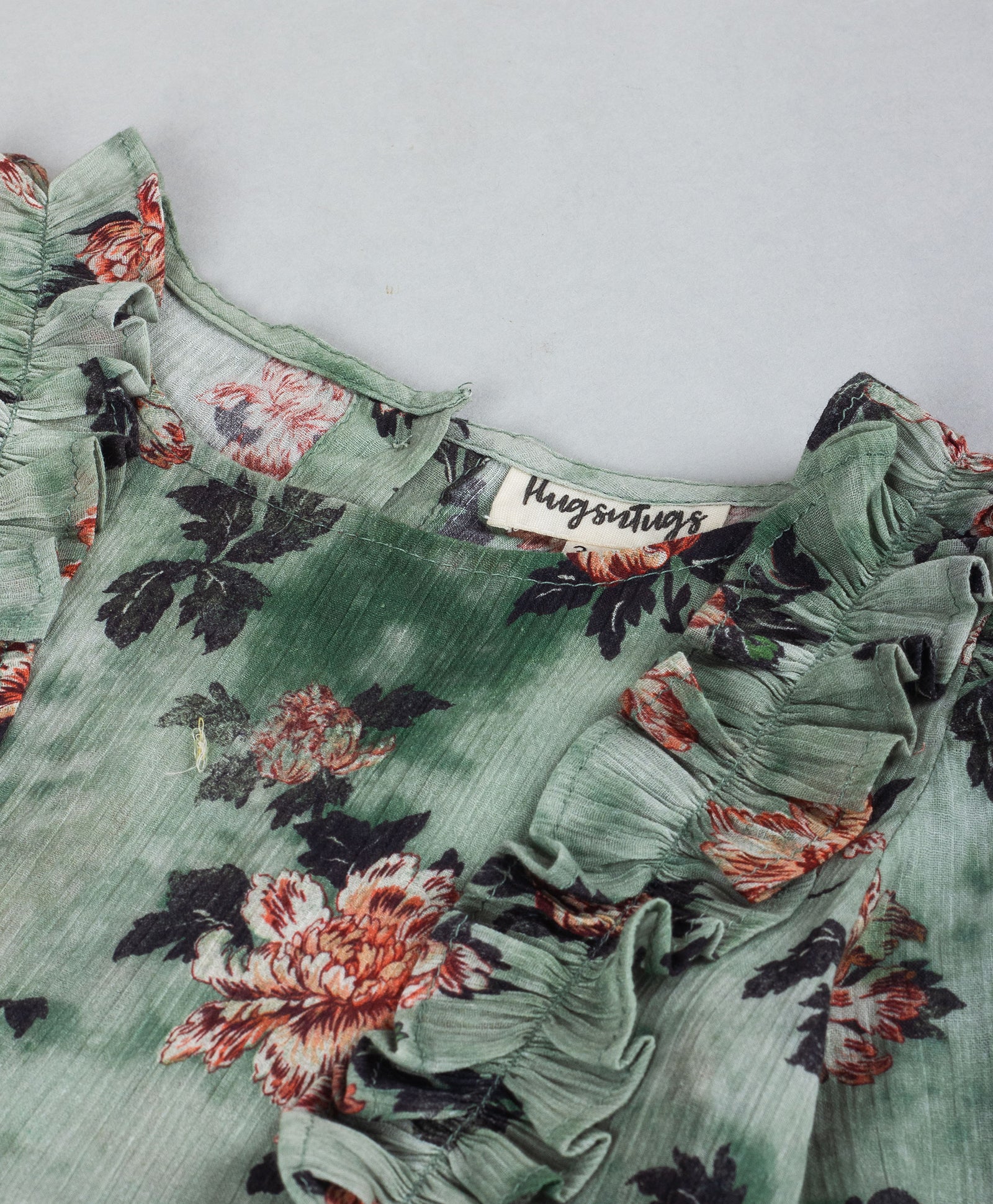 GREEN FLORAL PRINTED TOP WITH FRONT SIDE FRILLS