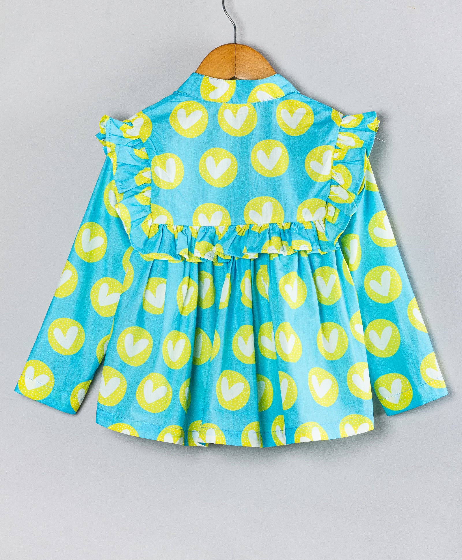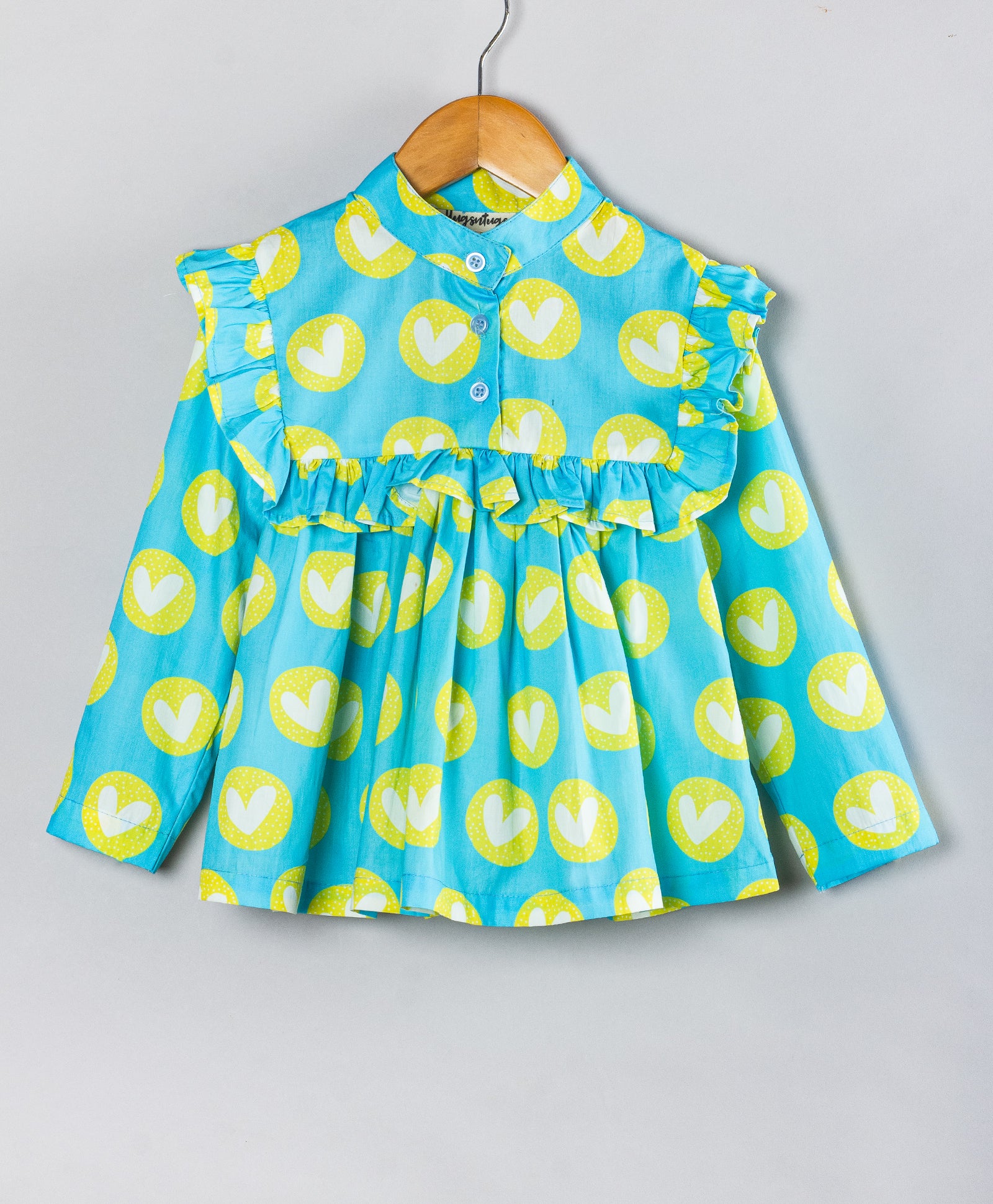 HEART PRINT FULL SLEEVES TOP WITH FRILL ALONG YOKE