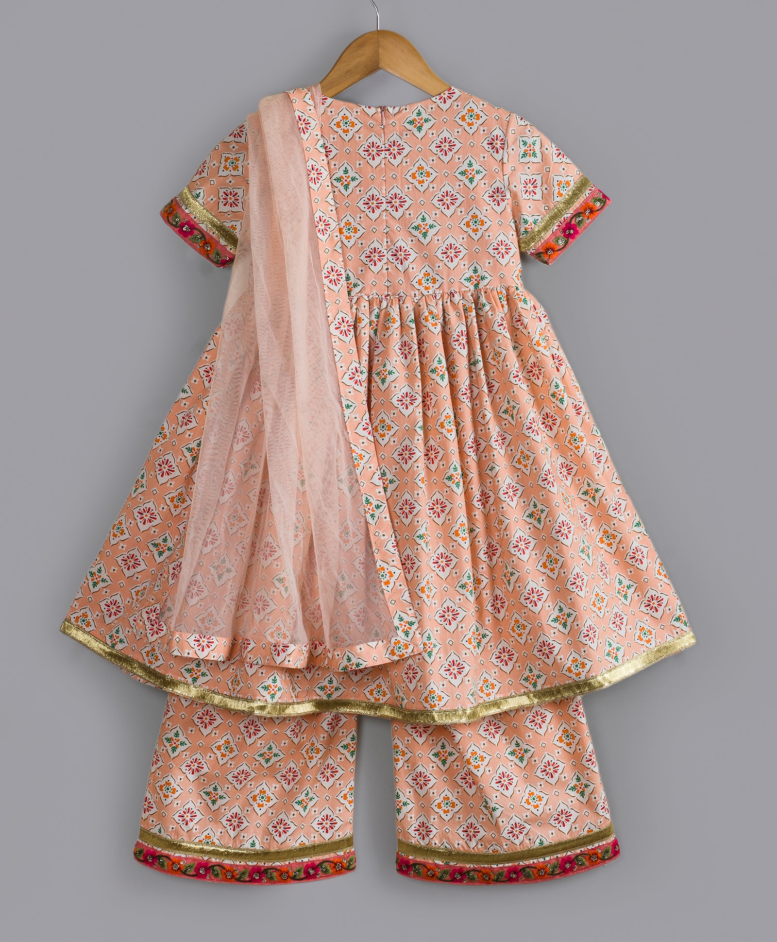 INDIAN MOTIF ALL OVER PRINT 3 PC PEACH KURTA SET