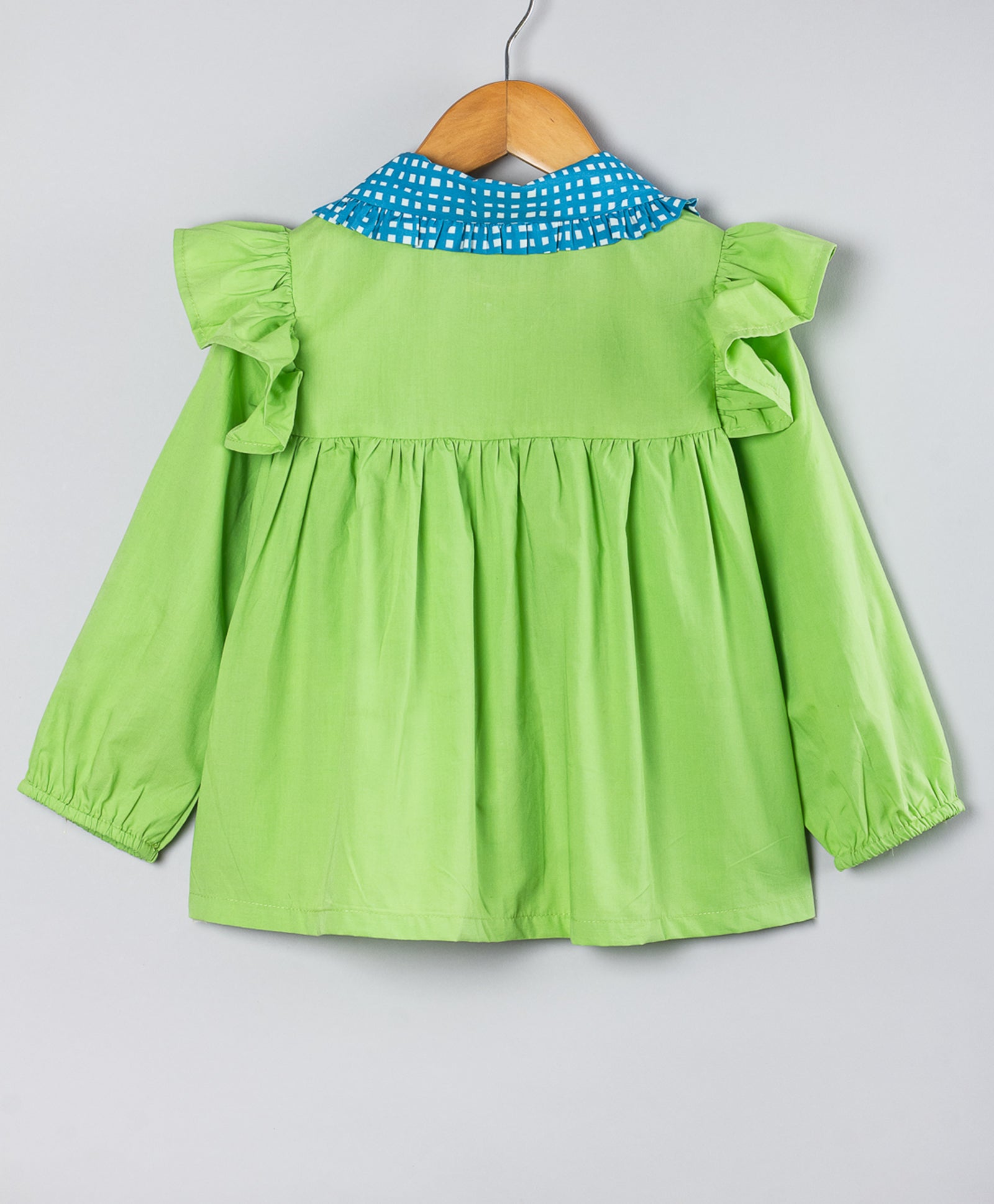LIME GREEN TOP WITH BLUE CHECK PRINT COLLAR
