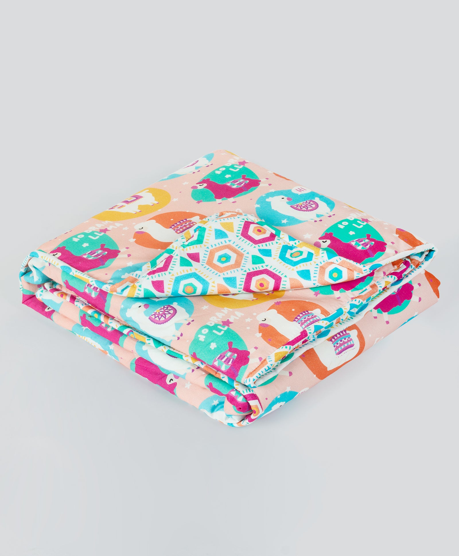 LLAMA PRINT AC QUILT WITH MULTI GEOMETRIC PRINT LINING PRINT.