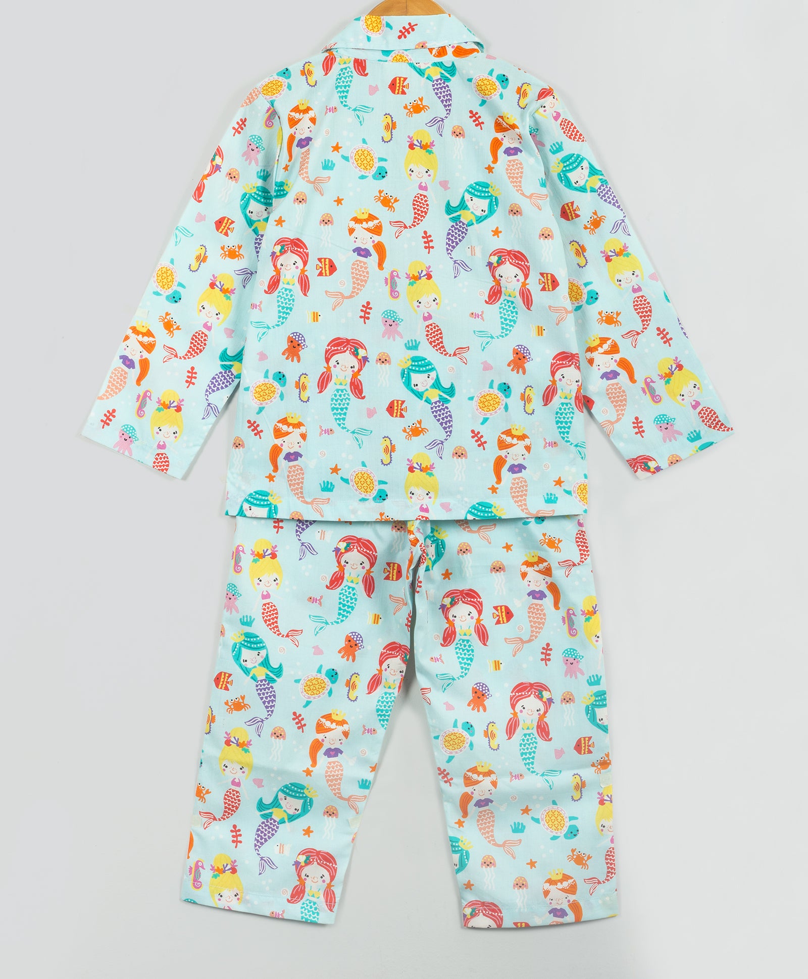 MERMAID AND JELLY FISH PRINT BUTTONDOWN SHIRT WITH COLLARS WITH MATCHING PJ