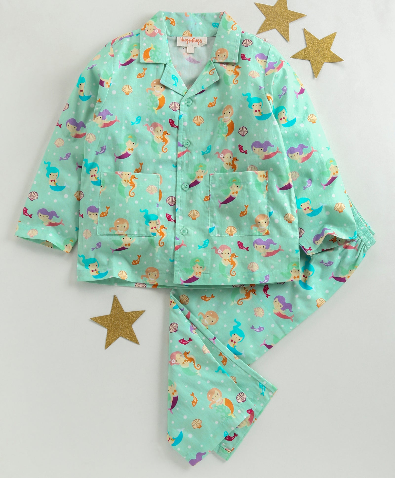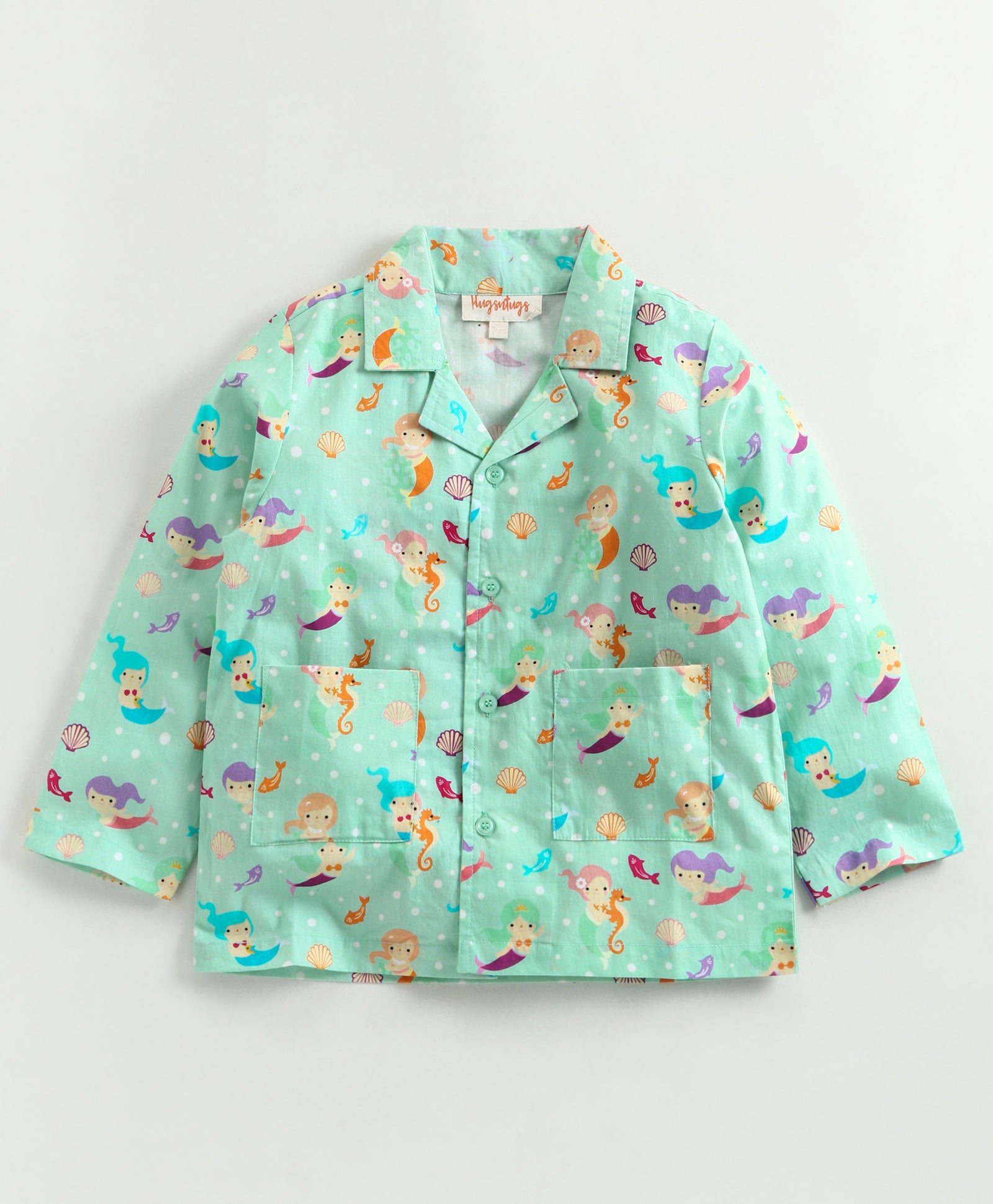MERMAID AND AQUATIC LIFE PRINT BUTTONDOWN SHIRT WITH COLLARS WITH MATCHING PJ