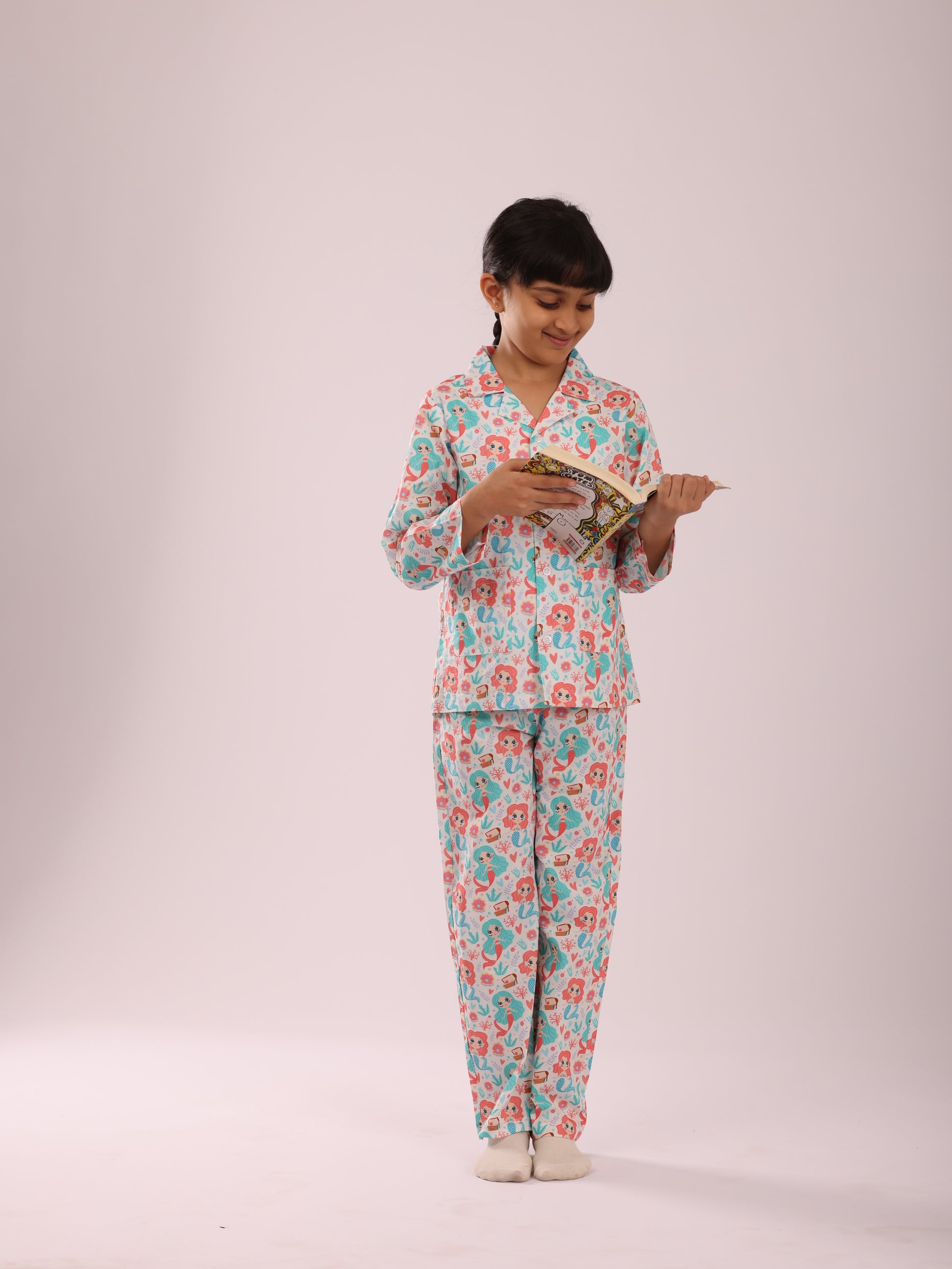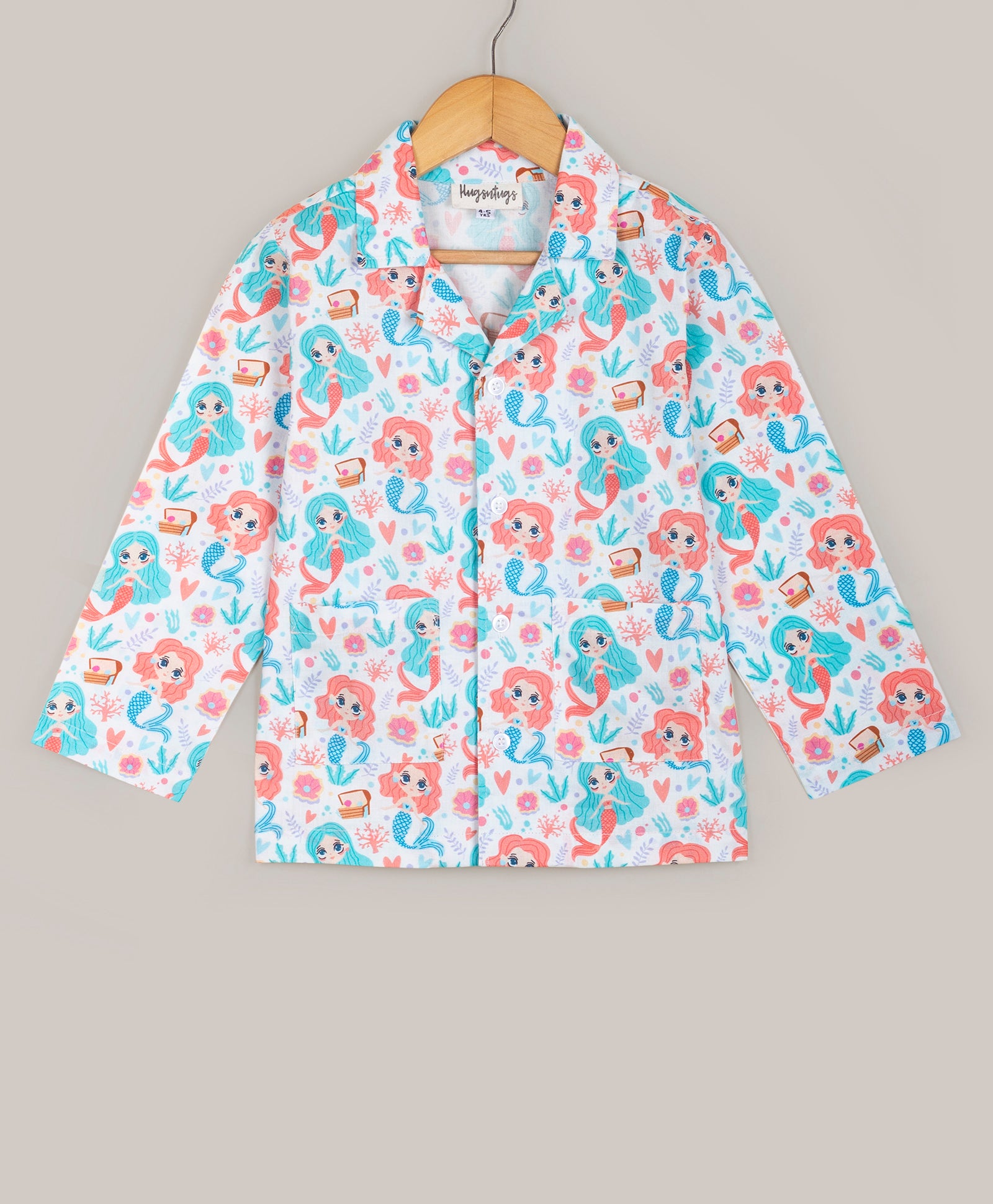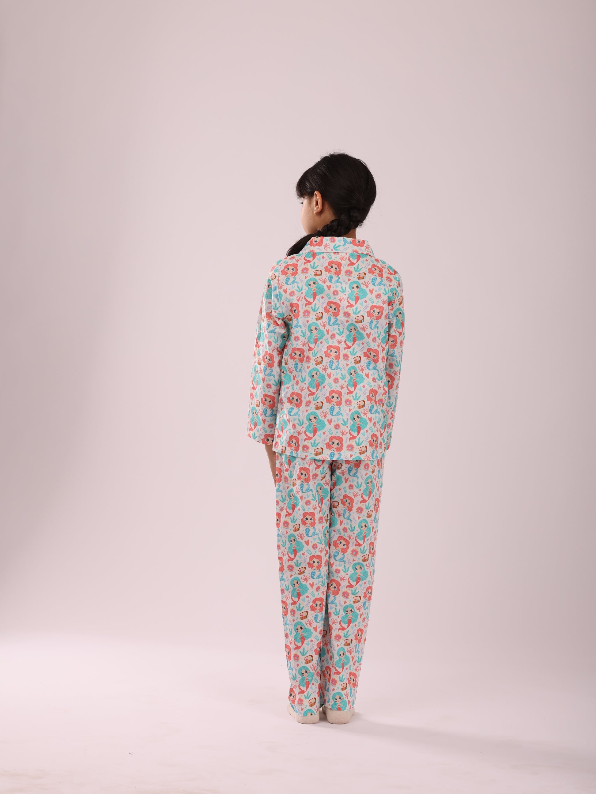 MERMAID PRINT BUTTON DOWN SHIRT WITH COLLARS WITH MATCHING PJ