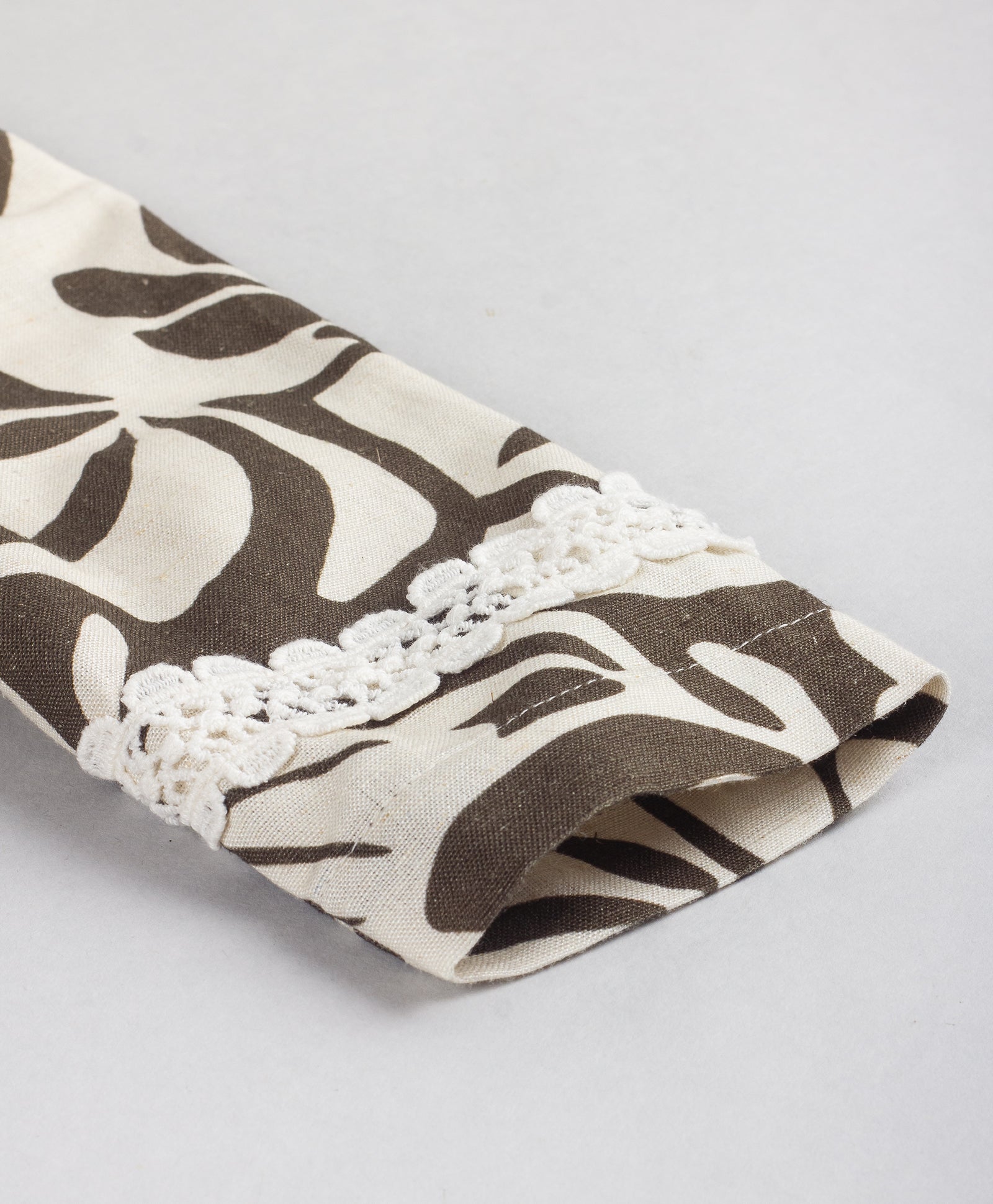 LACE DETAILING AT NECK, BOTTOM EDGE AND SLEEVE ENDS