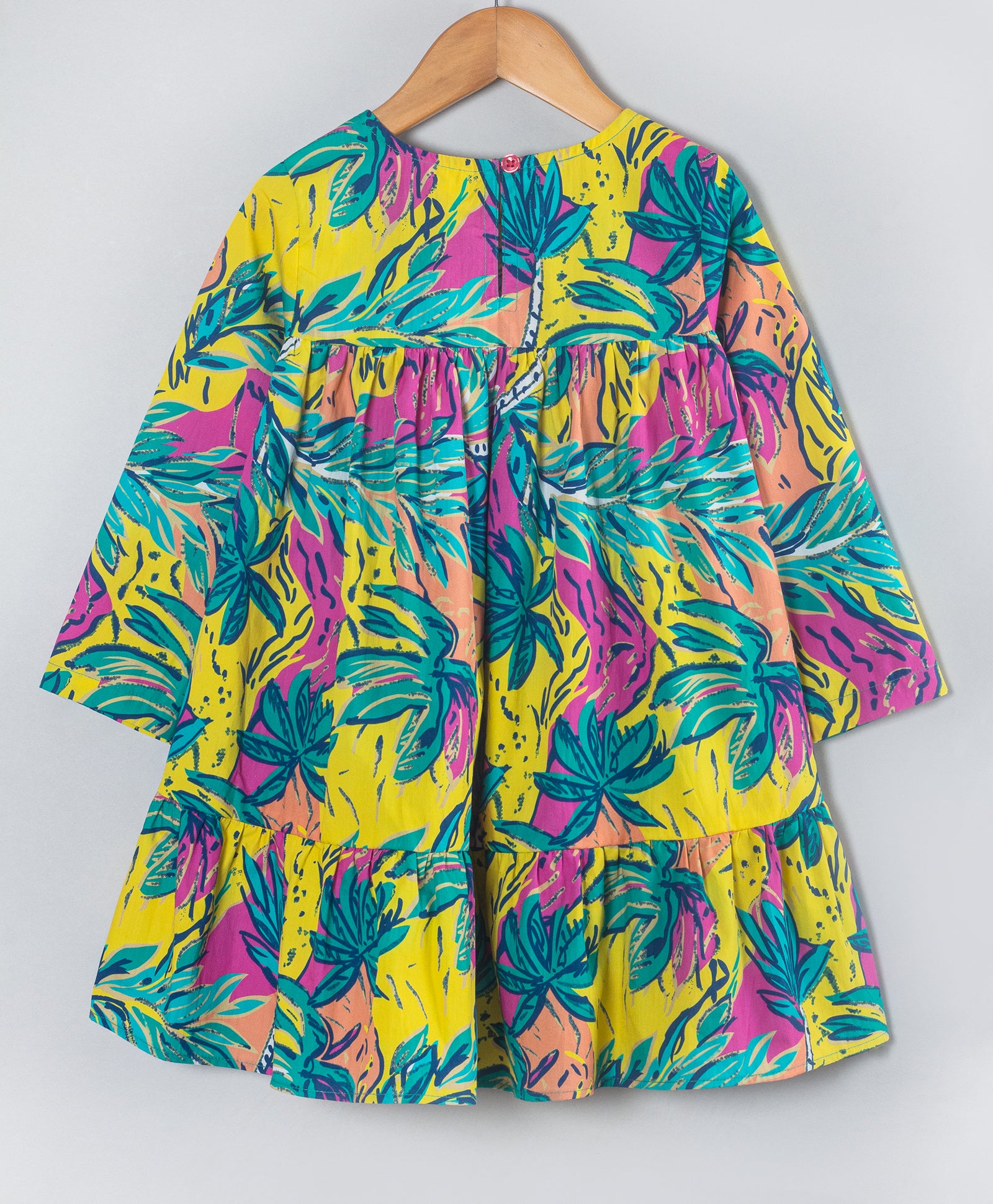 MULTI COLOR ALL OVER LEAVES PRINT DRESS
