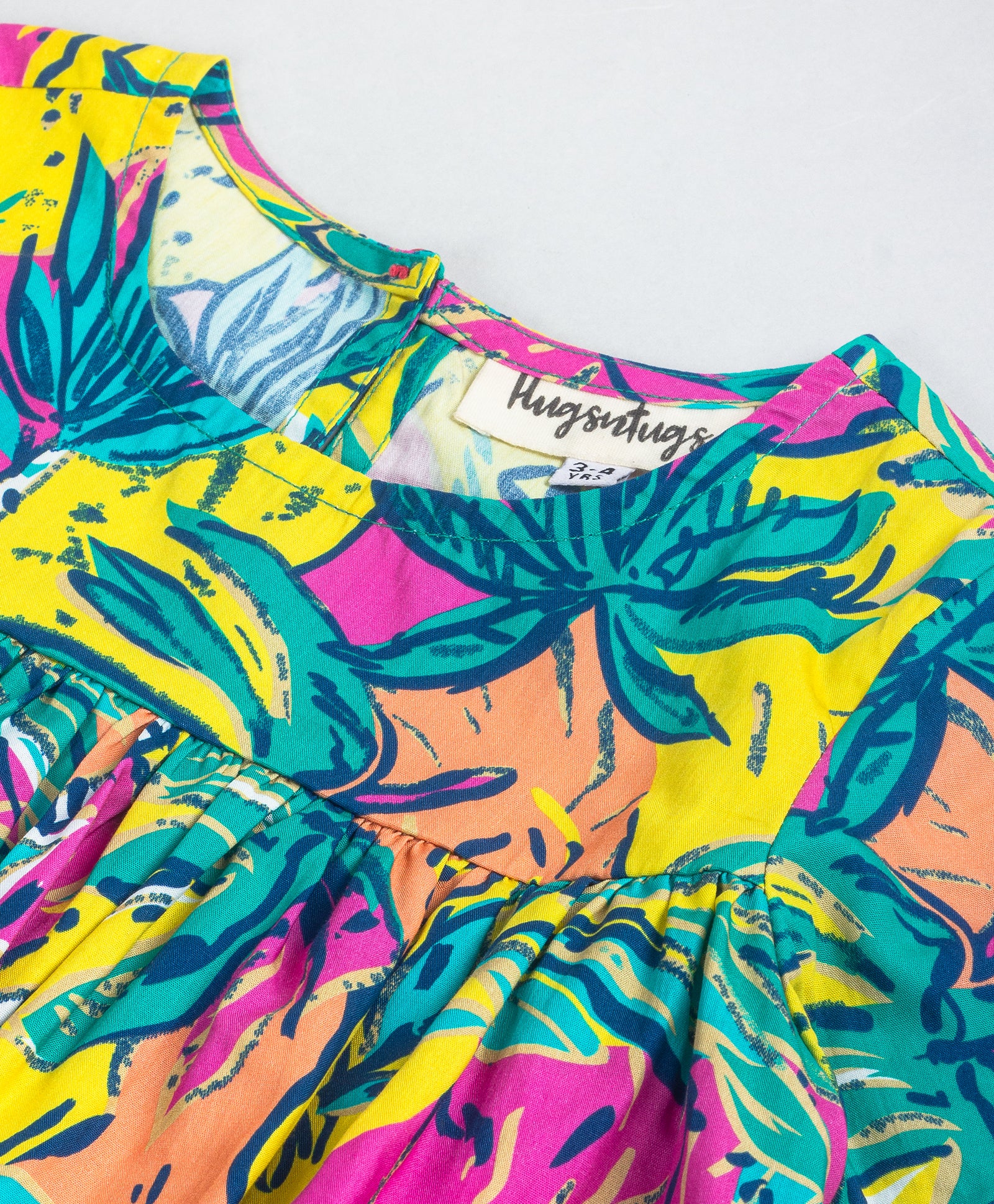 ALL OVER MULTI COLOR PALM PRINT DRESS