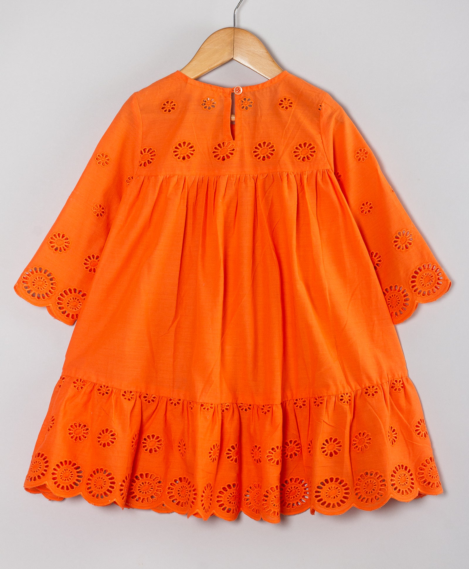 ORANGE SCHIFFLI FULL SLEEVES DRESS