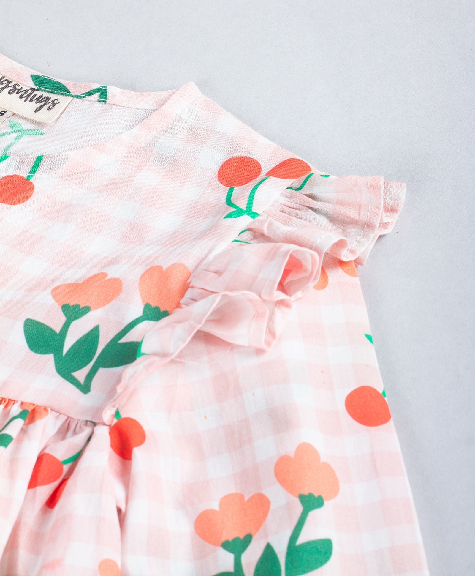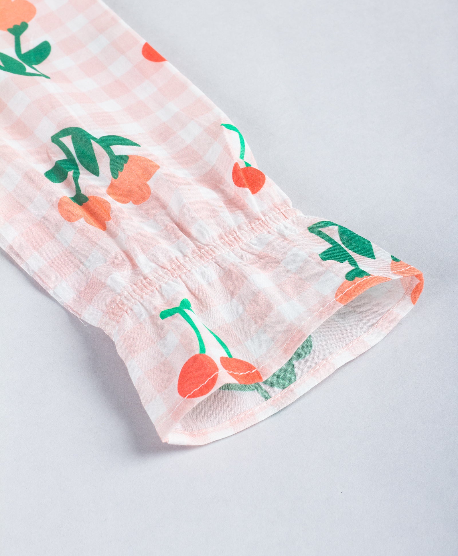 PINK DAISY ON CHECK PRINT FULL SLEEVES TOP