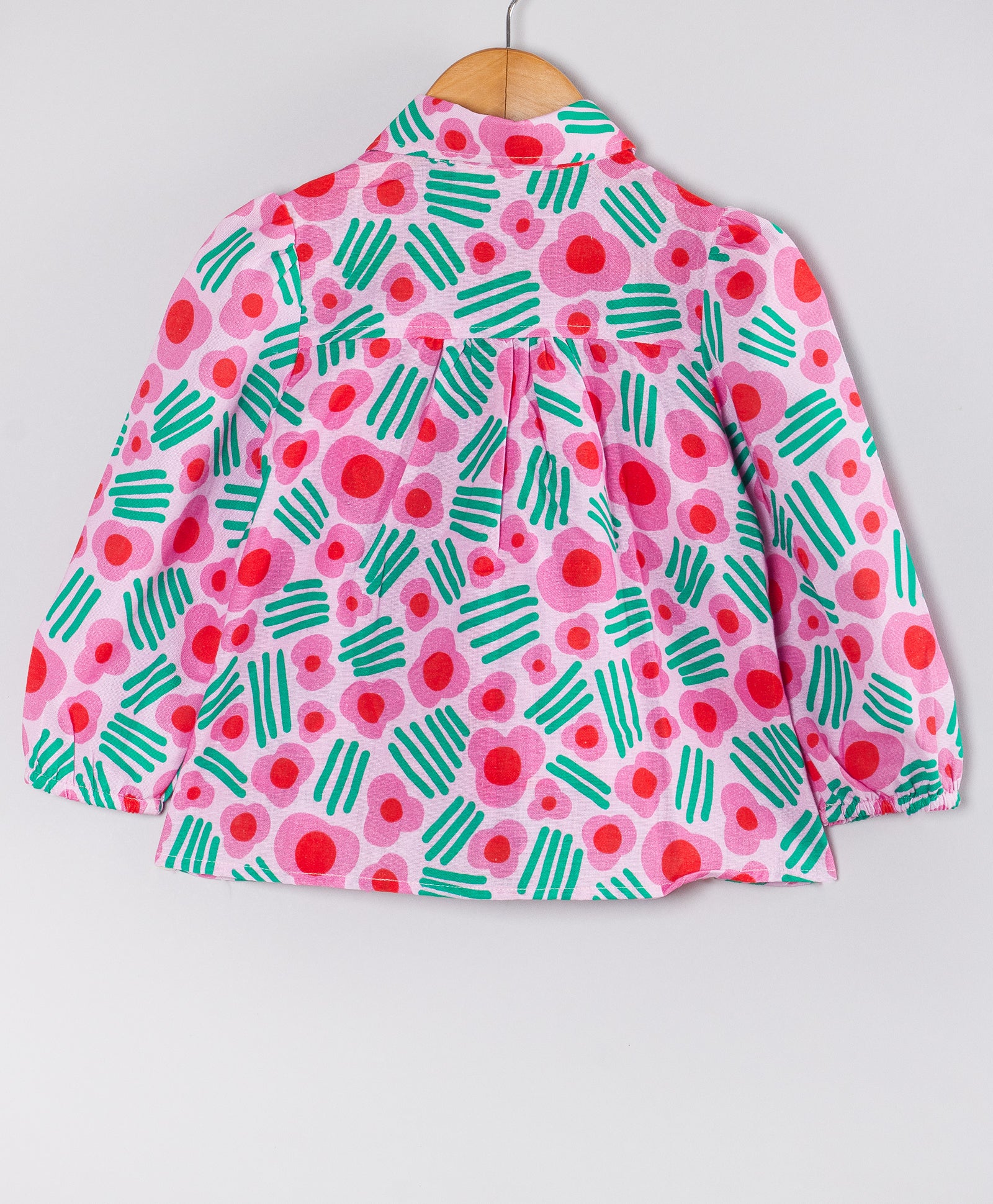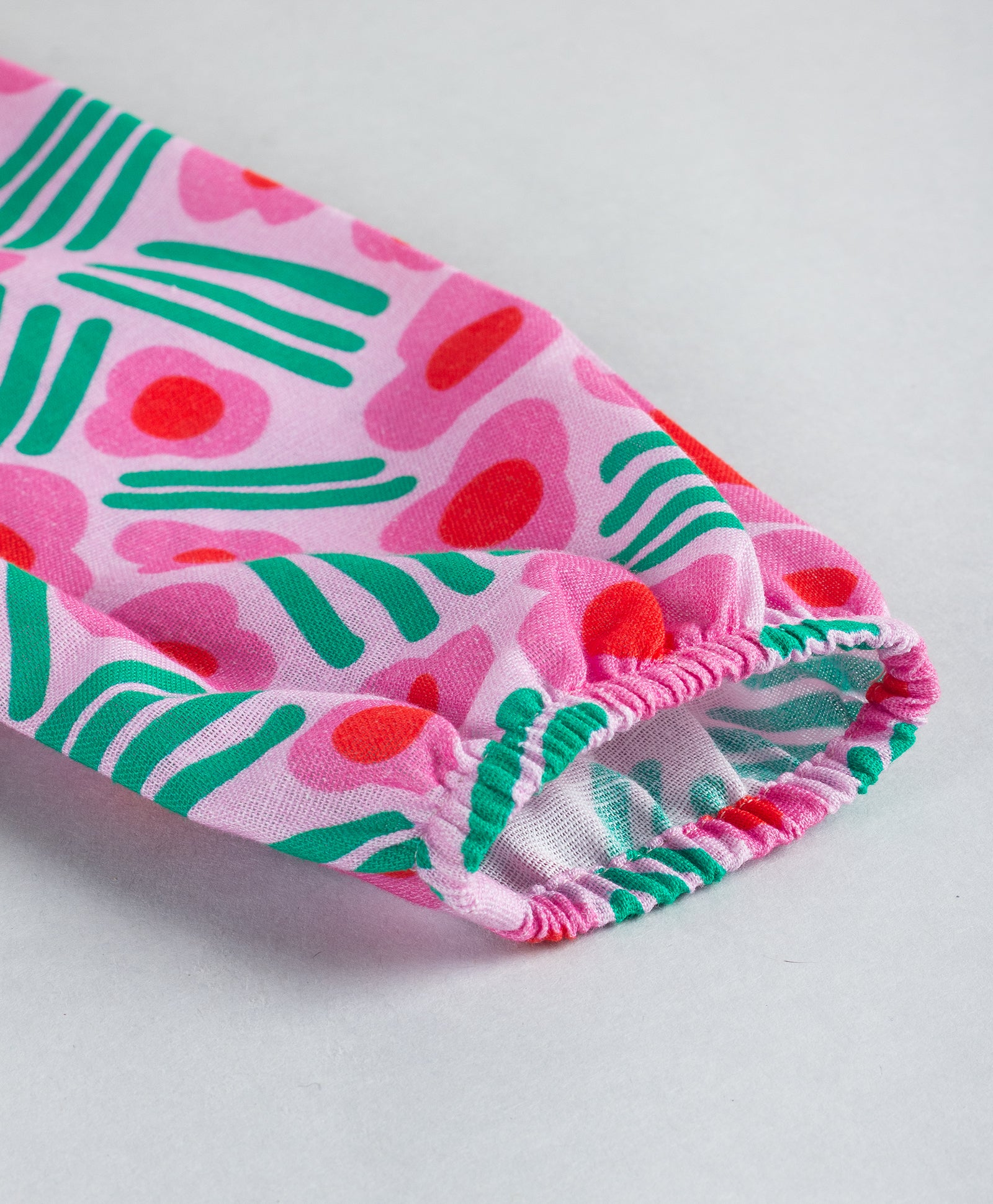 PINK FLORAL PRINT TOP WITH FRILLS AT FRONT