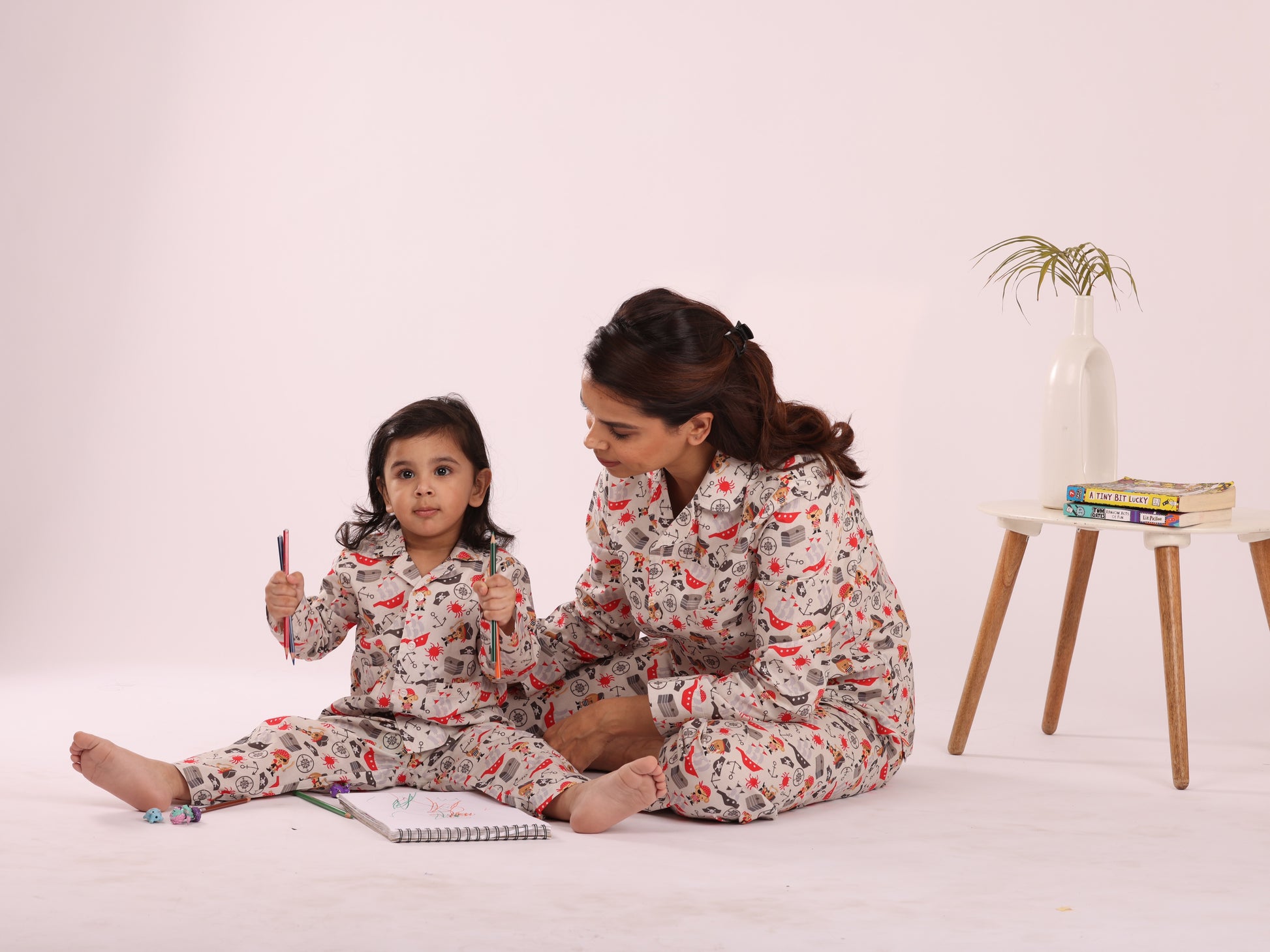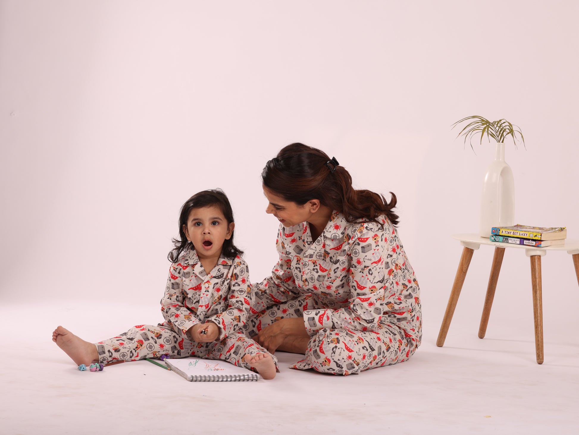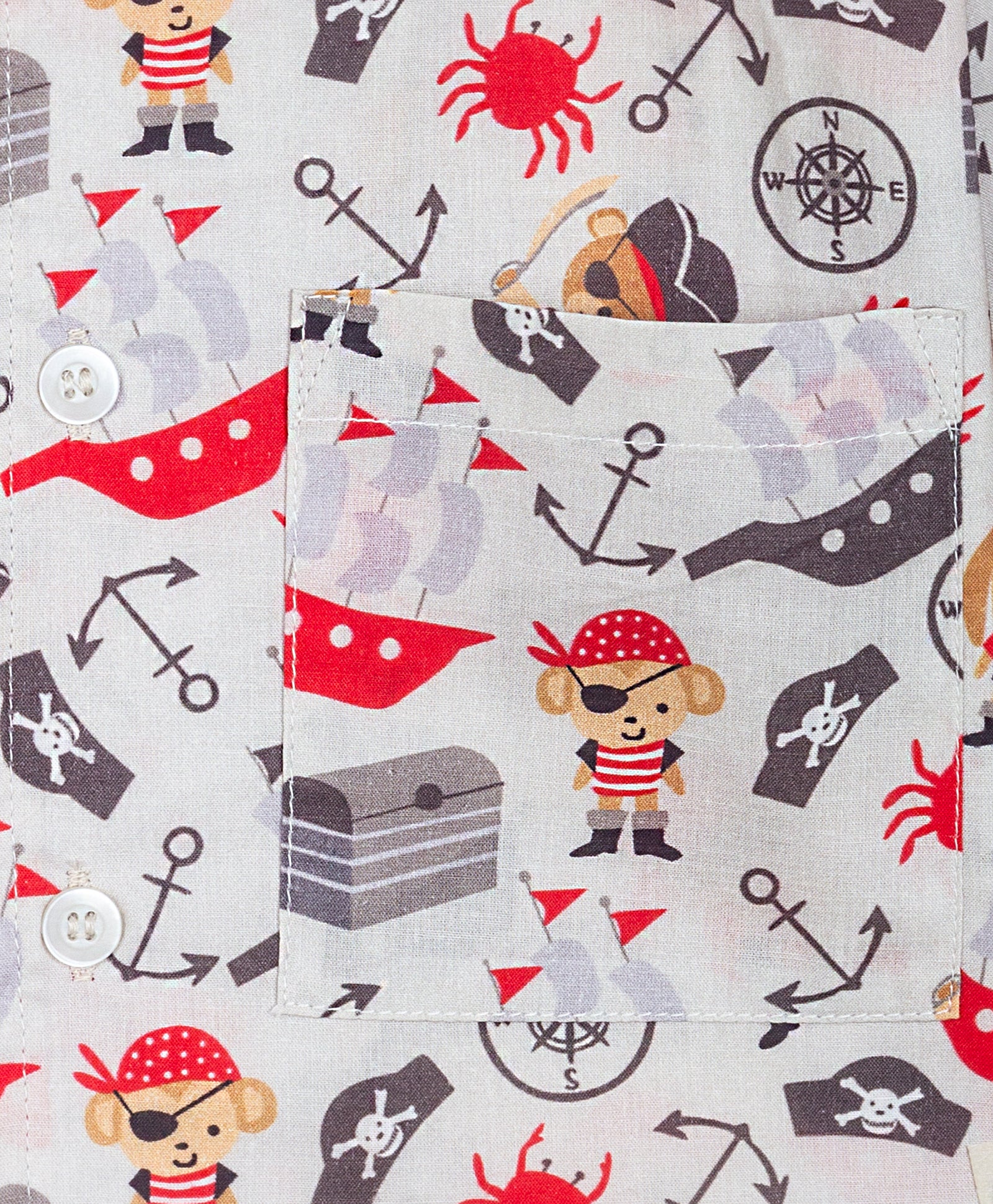PIRATE PRINT BUTTON DOWN SHIRT WITH COLLARS WITH MATCHING PJ
