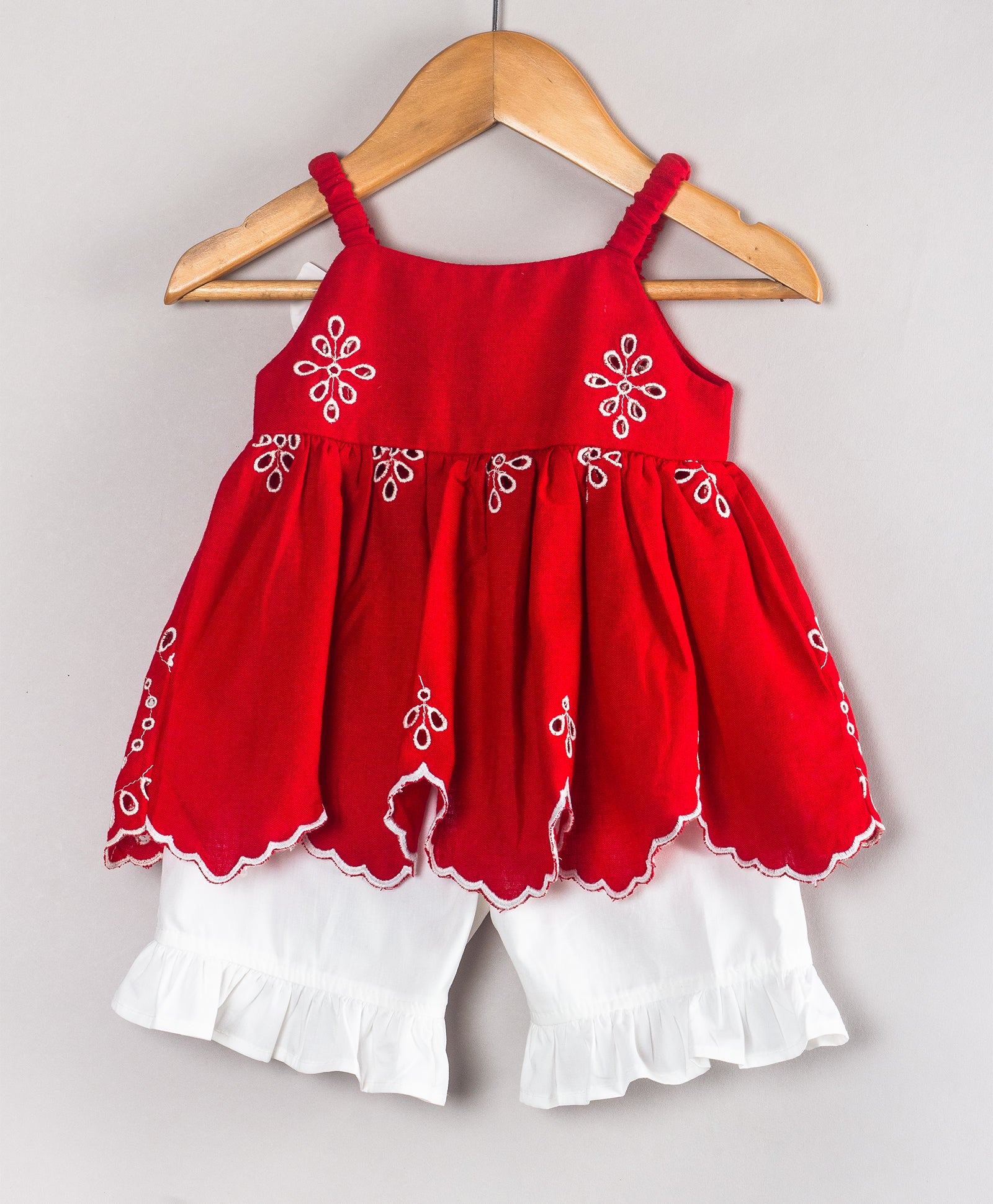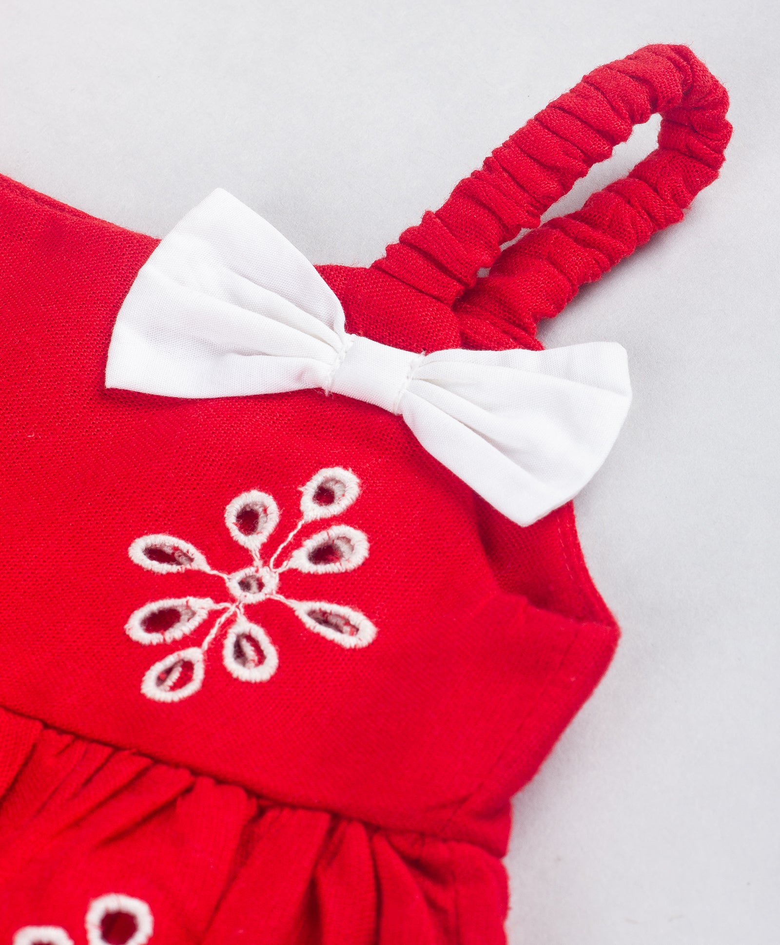 RED EMBROIDERED INFANT TOP WITH BLOOMERS