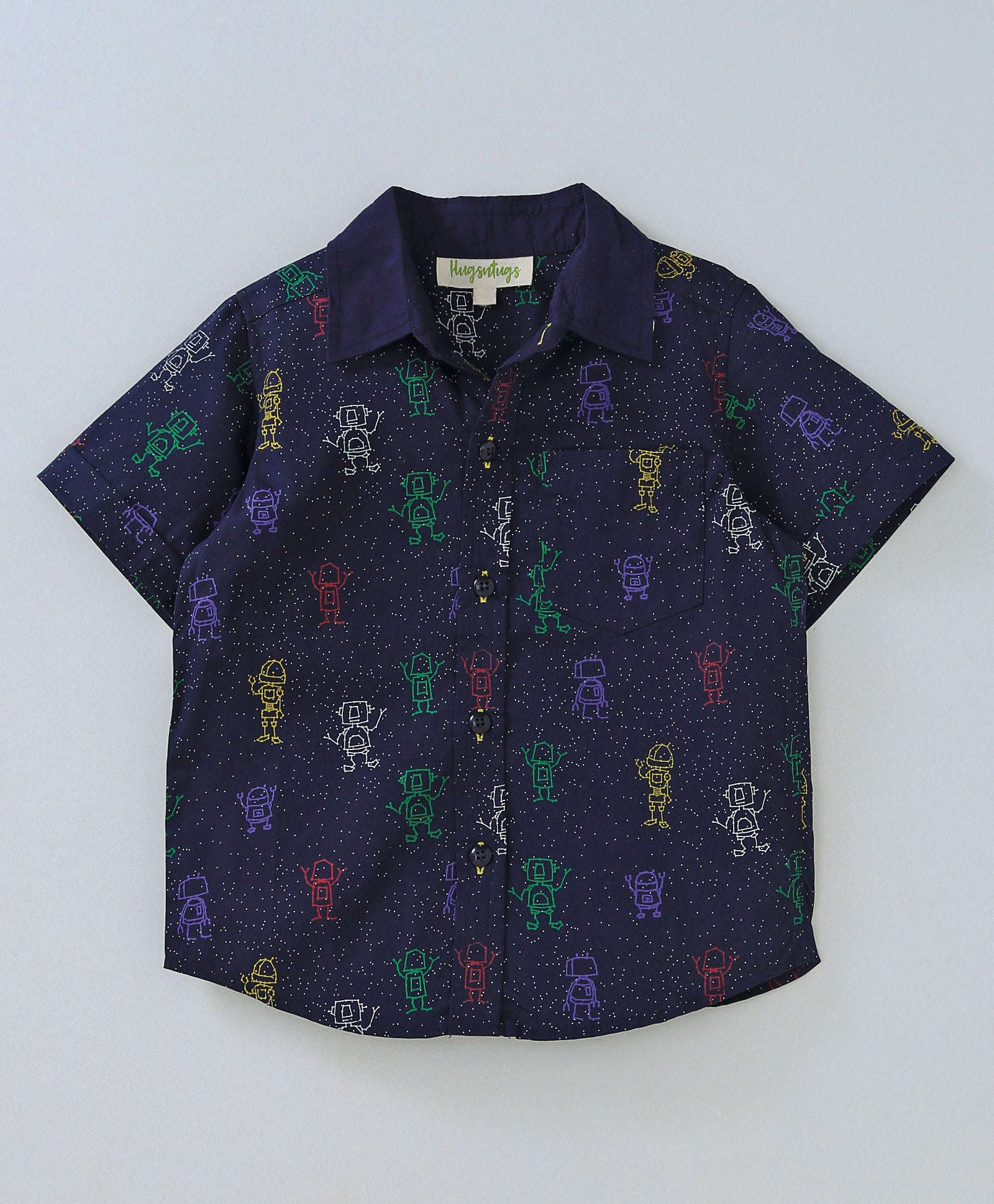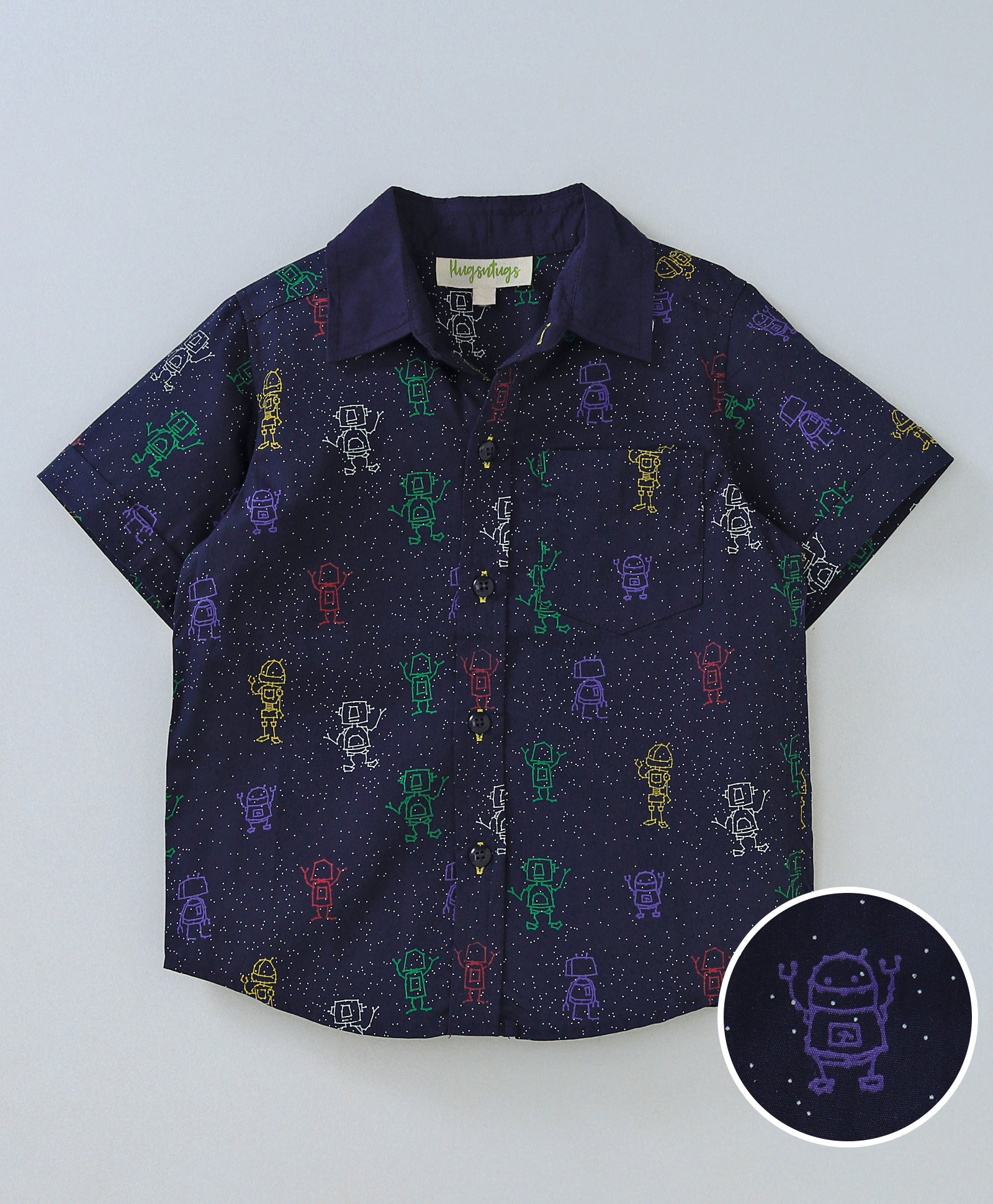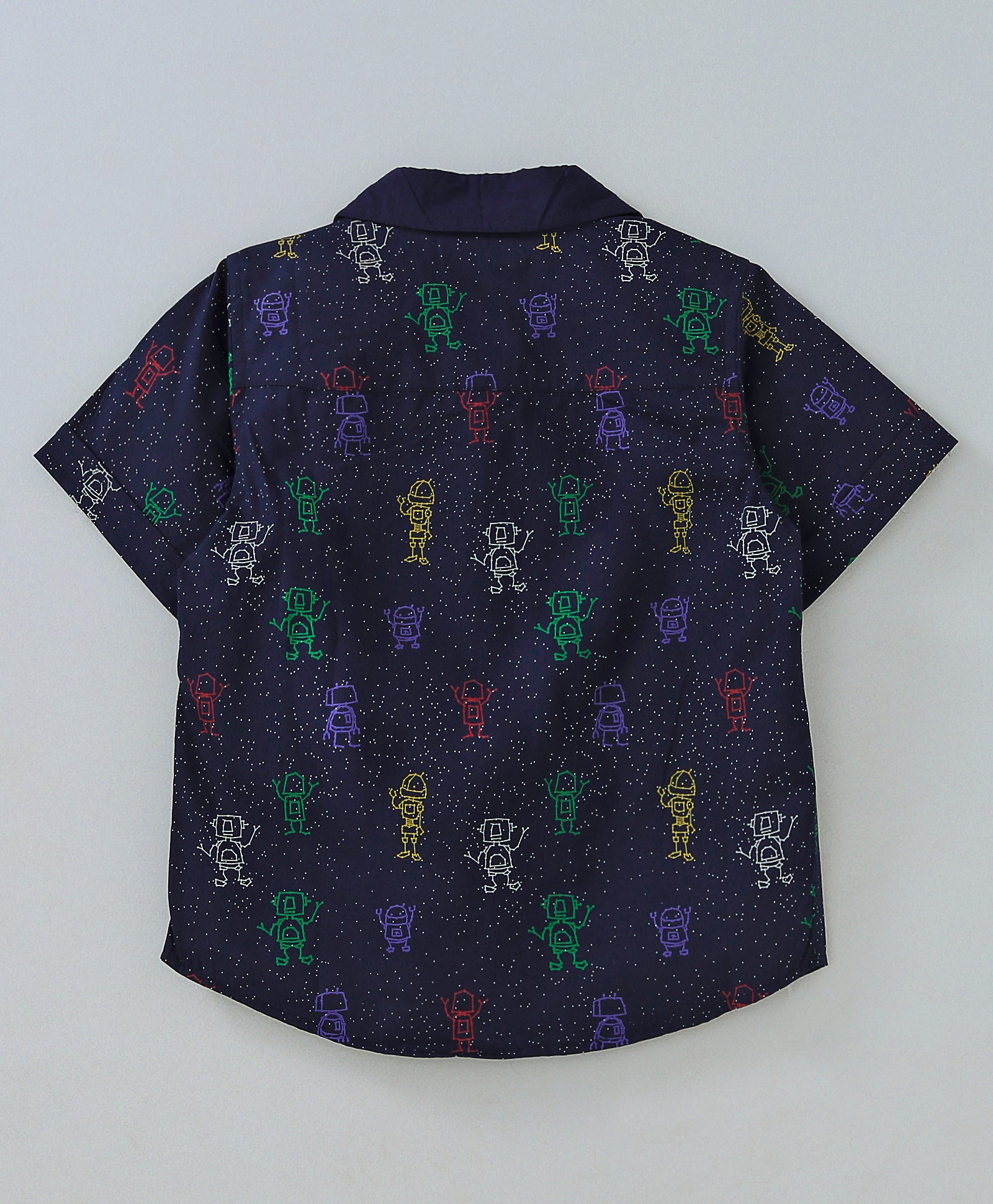 ROBOT PRINT SHIRT WITH SOLID COLLAR AND HALF SLEEVES