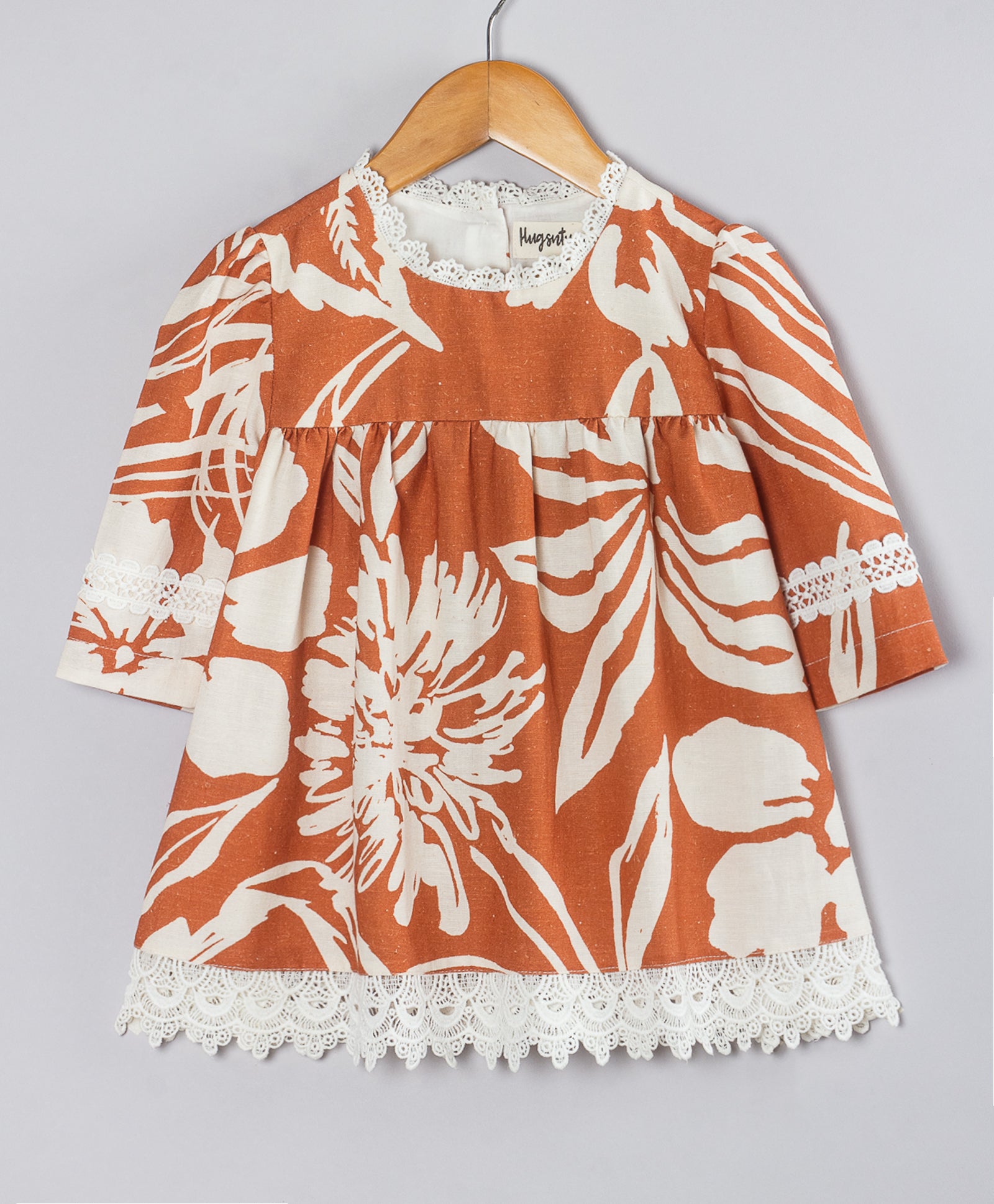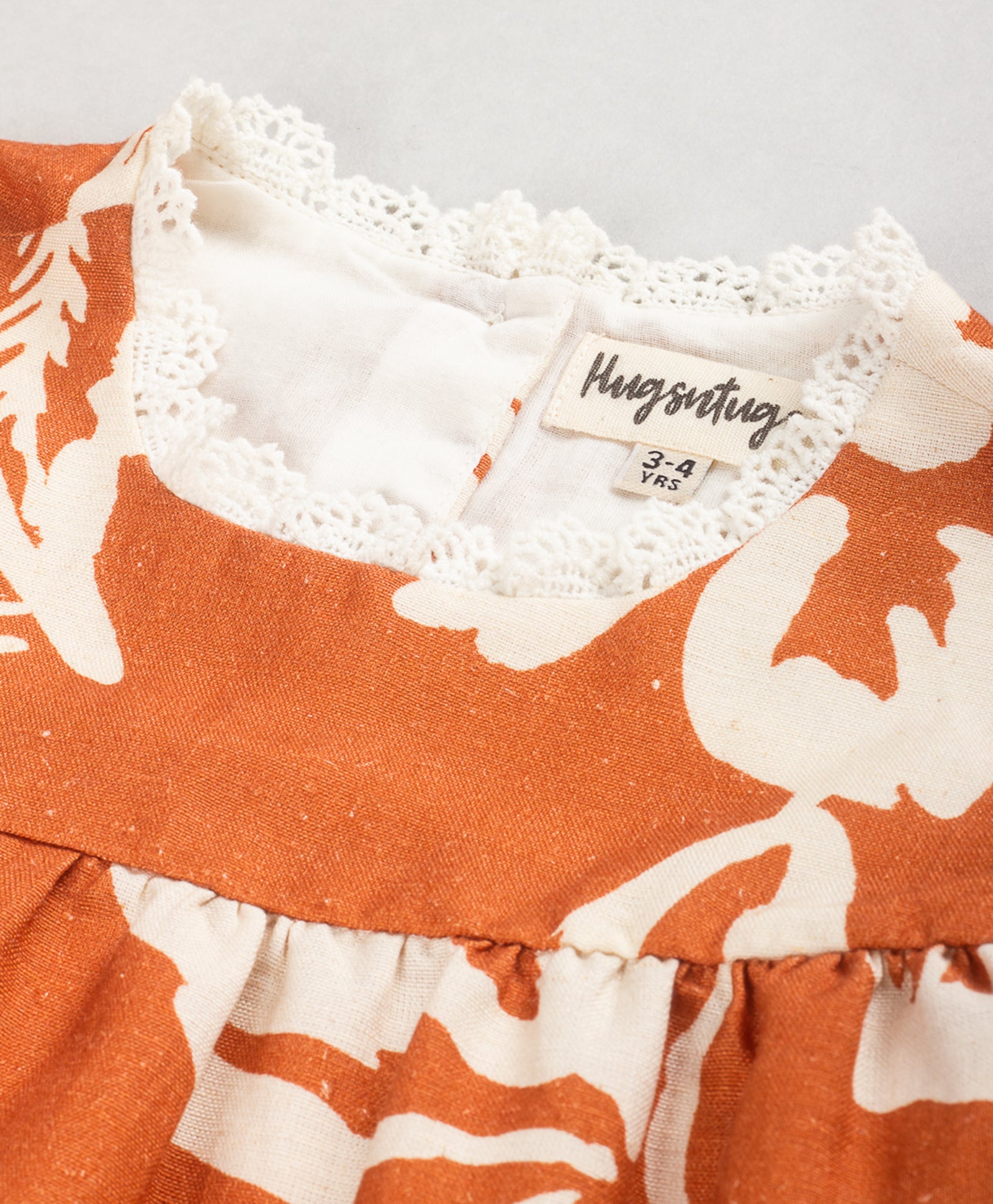 RUST MONOCOLOR TUNIC TOP WITH LACE DETAILING
