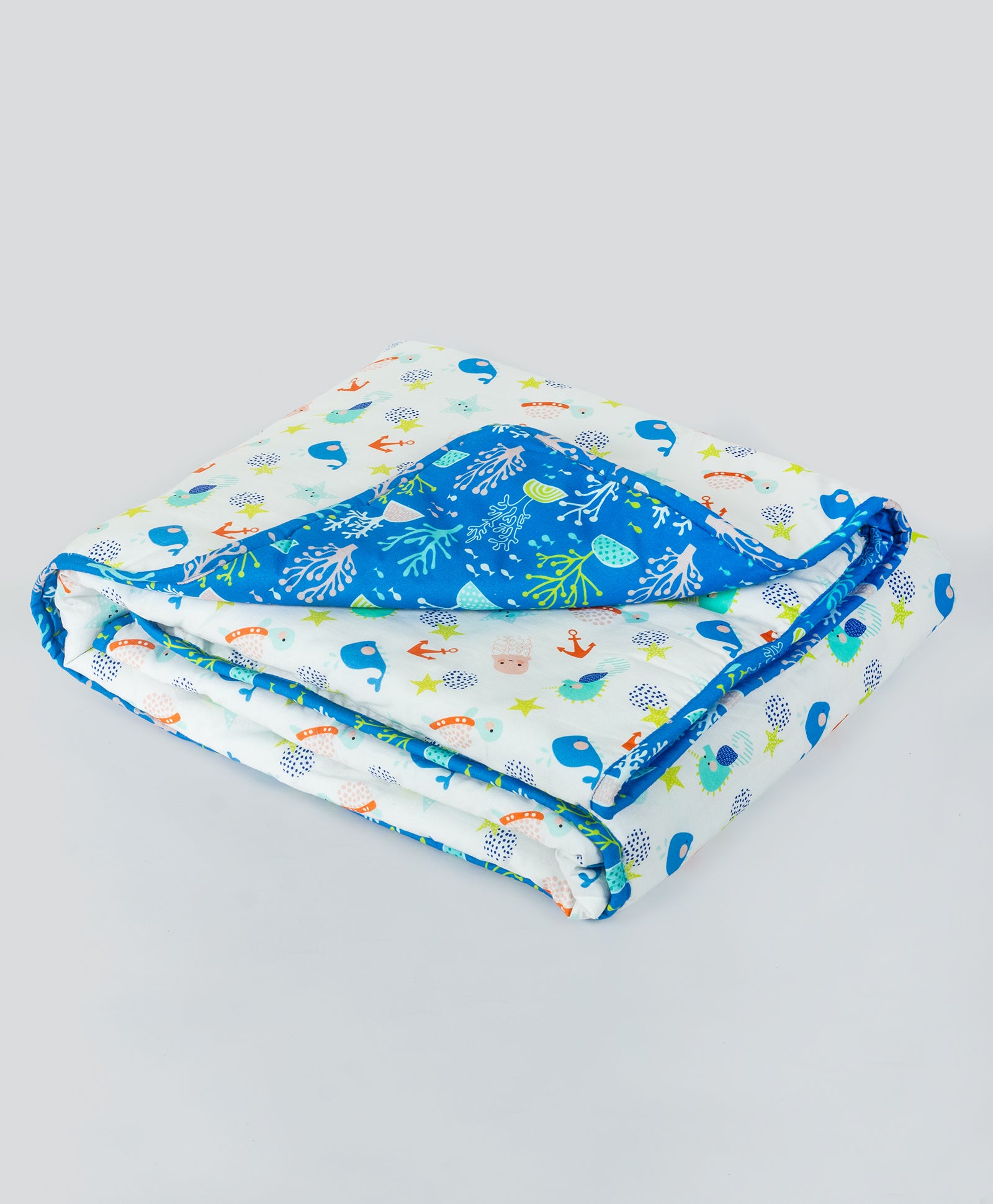 starfish and anchor print AC quilt with sea plant lining print