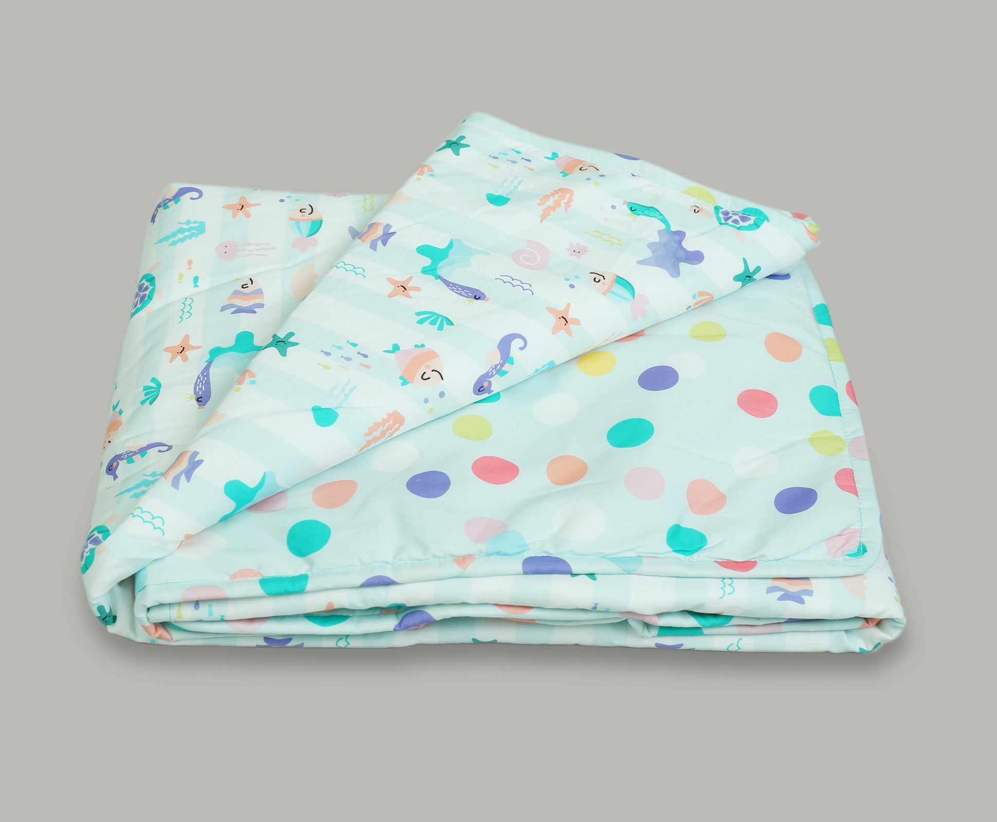 STAR FISH AND SEAS HORSE PRINT COT SET INCLUDES 1 SHEET + 1 HEAD PILLOW + 1 AC QUILT COT SIZE + 2 BOLSTER PILLOWS WITH REMOVABLE COVERS.