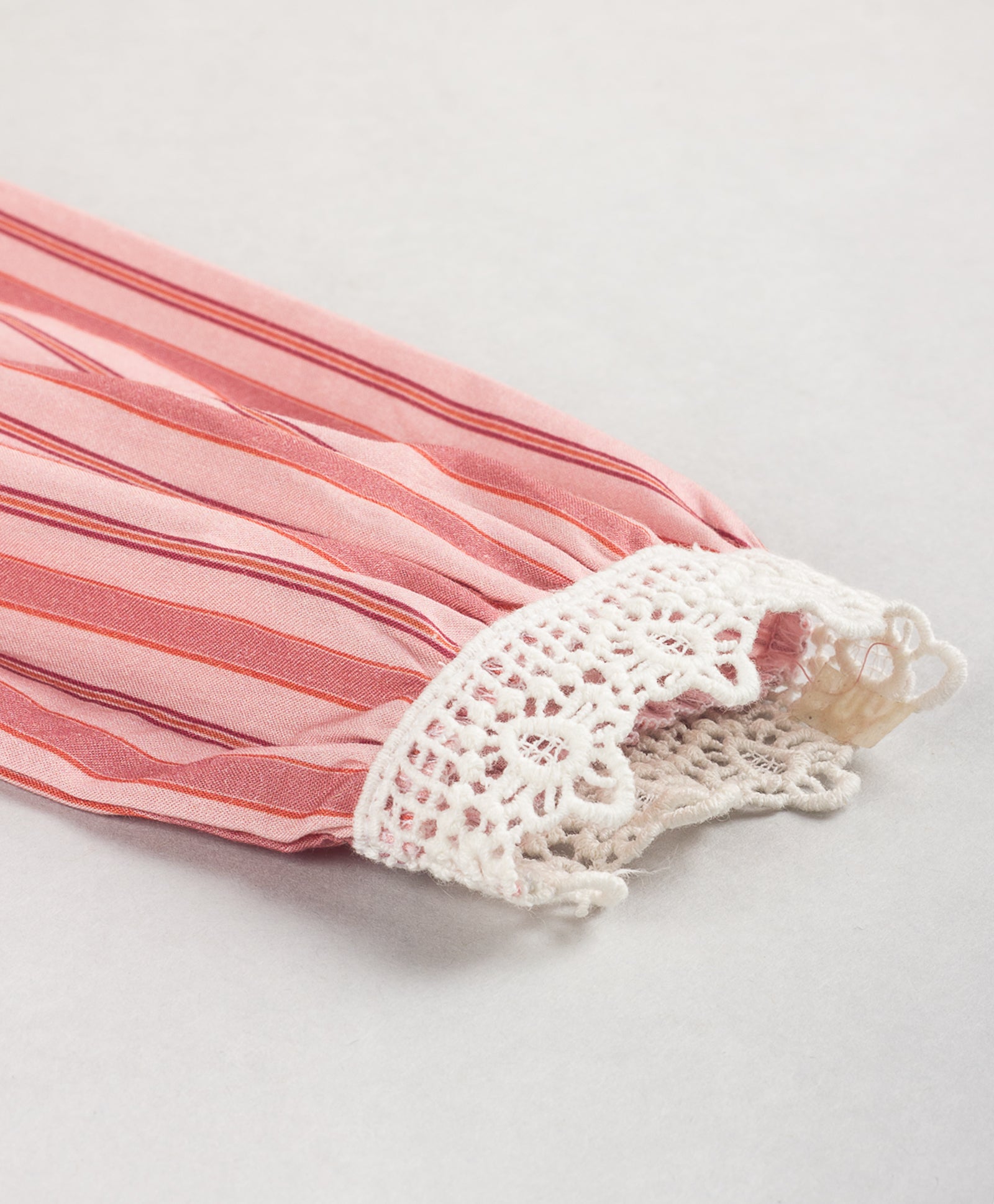LACE DETAILING AT FRONT SIDE SEAMS , NECK AND SLEEVE ENDS