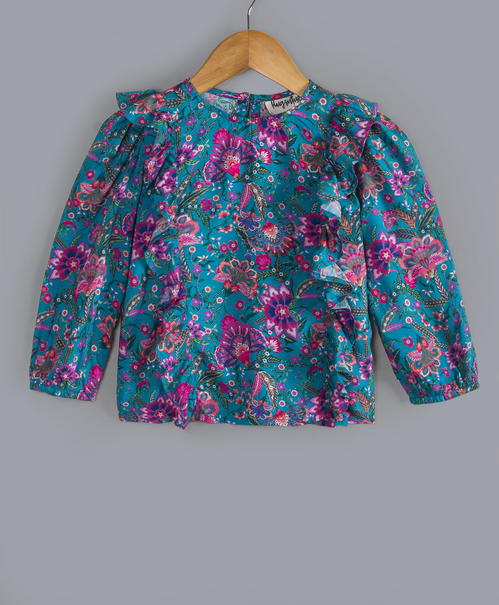 FLORAL TOP WITH FRILLS ON THE FRONT SIDES