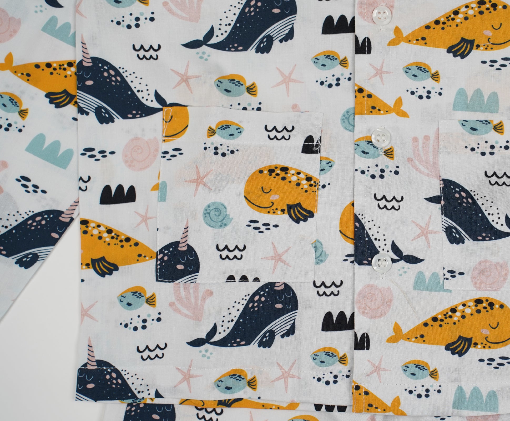 WHALE PRINT BUTTONDOWN SHIRT WITH COLLARS WITH MATCHING PJ