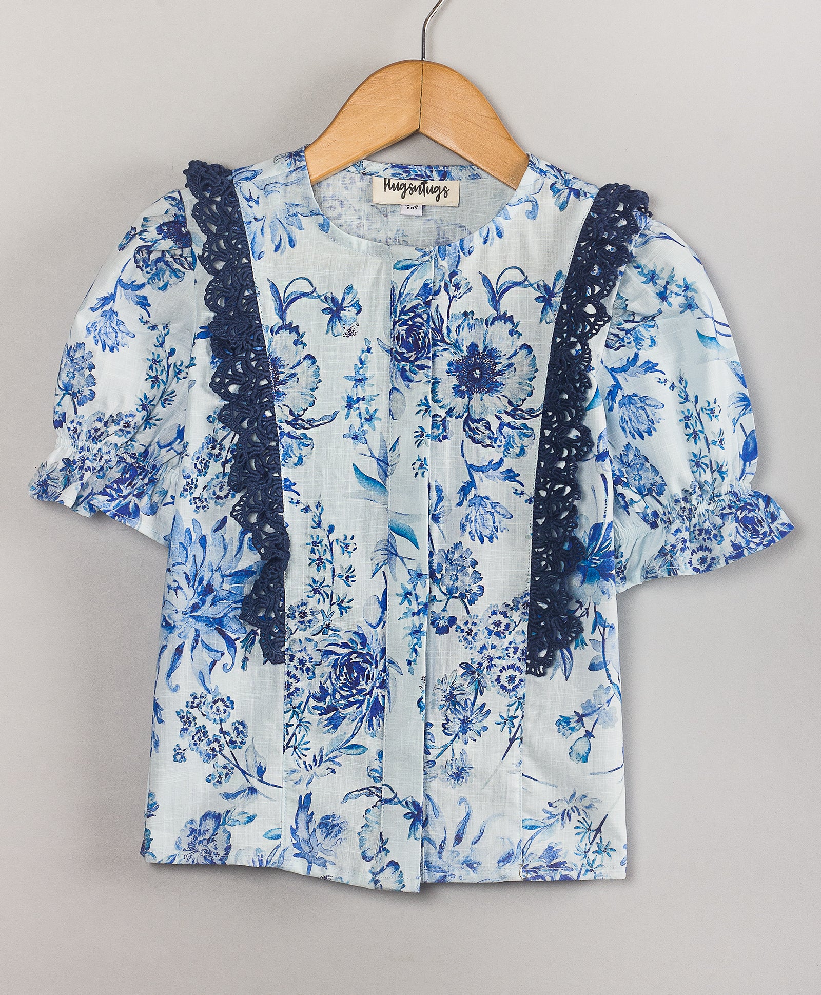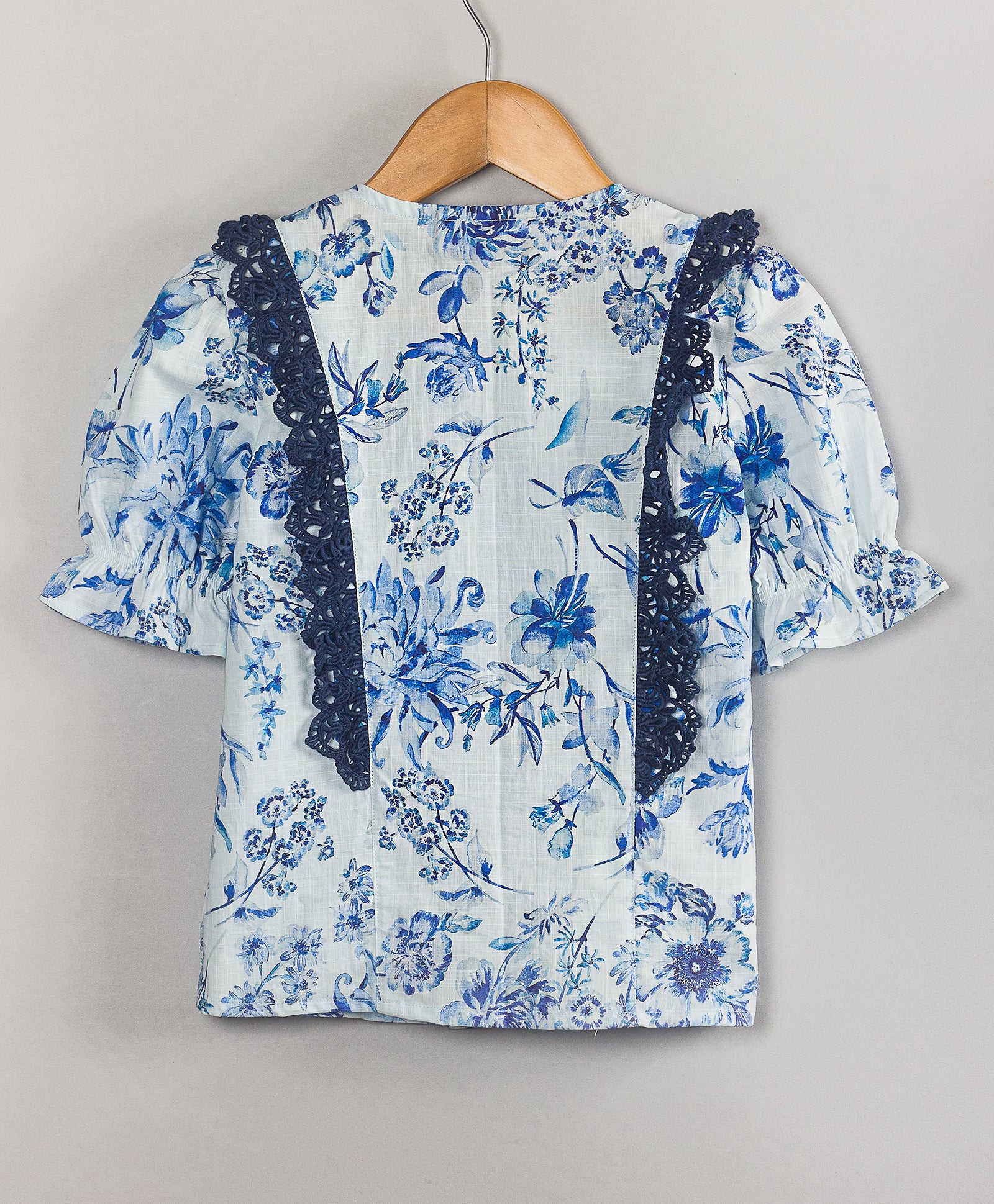 WHITE BLUE FLORAL PRINT TOP