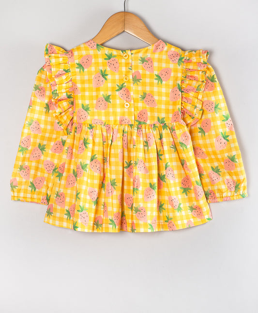 STRAWBERRY ON YELLOW CHECK PRINT TOP